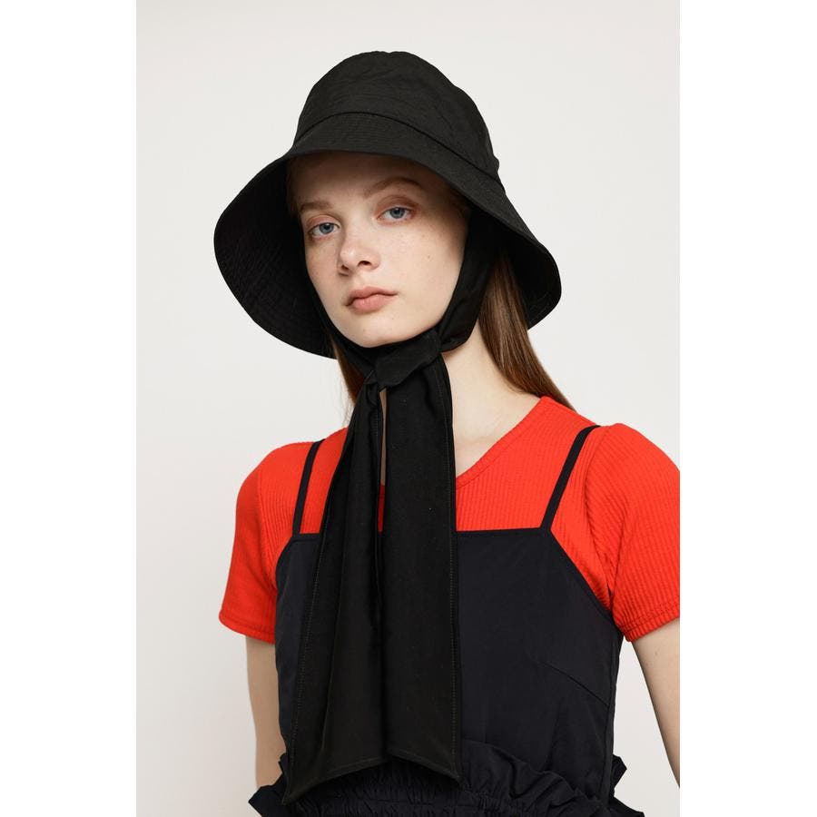 ■POINT/DETAIL:太いリボンが垂れたバケットハット。顎の下でリボンを結んで着用するのがオススメです。リボンは取り外しの出来る2WAY仕様となっています。