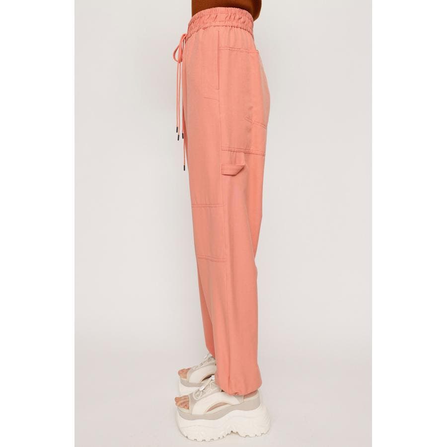 ■POINT:ウエストにツインリボンをあしらったルーズな作りのカーゴパンツ。