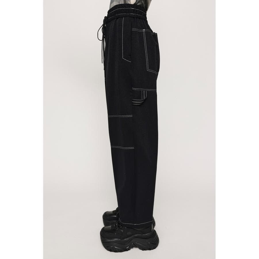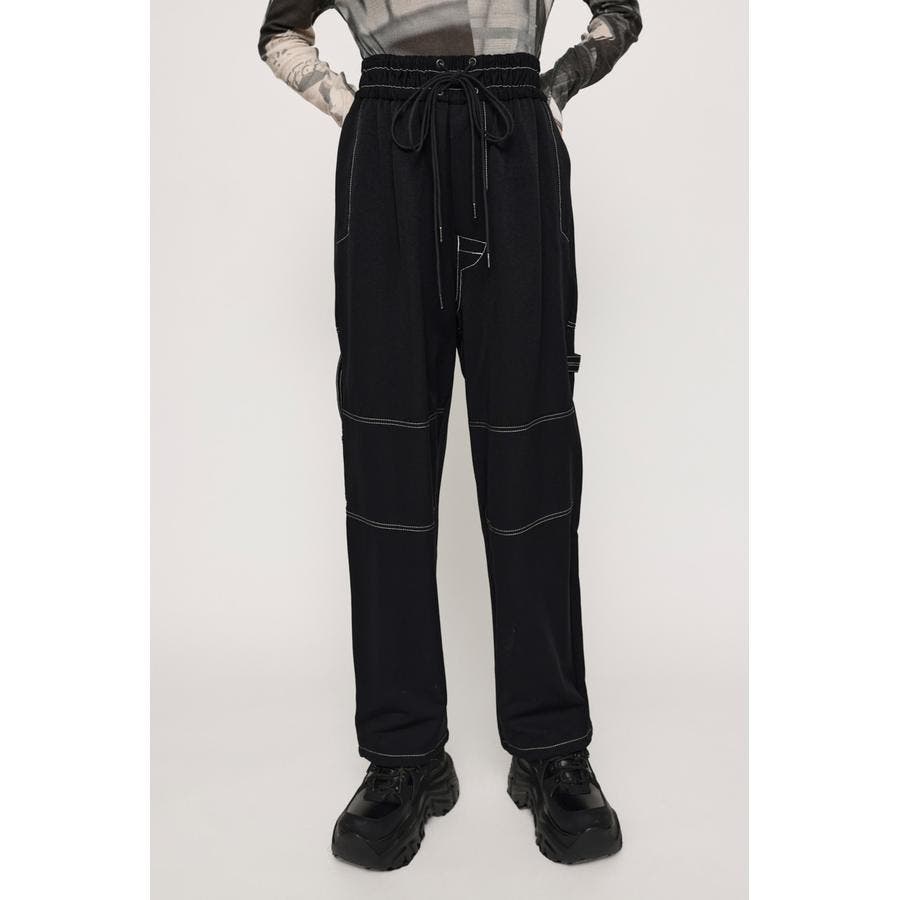 ■DETAIL:ニーパッチやハンマーループなど本格的なワークパンツディテールを取り入れ、ルーズな作りのシルエットなので、着用するだけでトレンド感の出せるアイテム。裾にはゴムスピンドルが付いているので、絞ることでシルエットが変えられます。