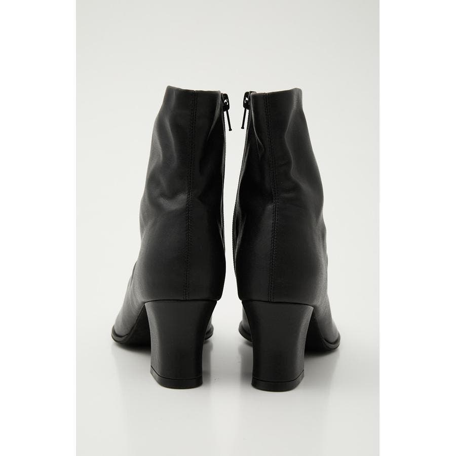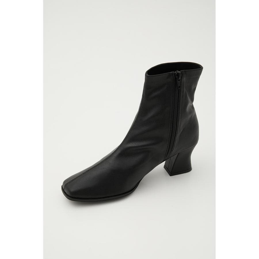 センターシームのミニマルデザインで、細身で女性らしい印象のスクエアトゥブーツ。程よいヒールで傾斜がきつくないので歩きやすく、デイリーに使いやすいアイテムです。