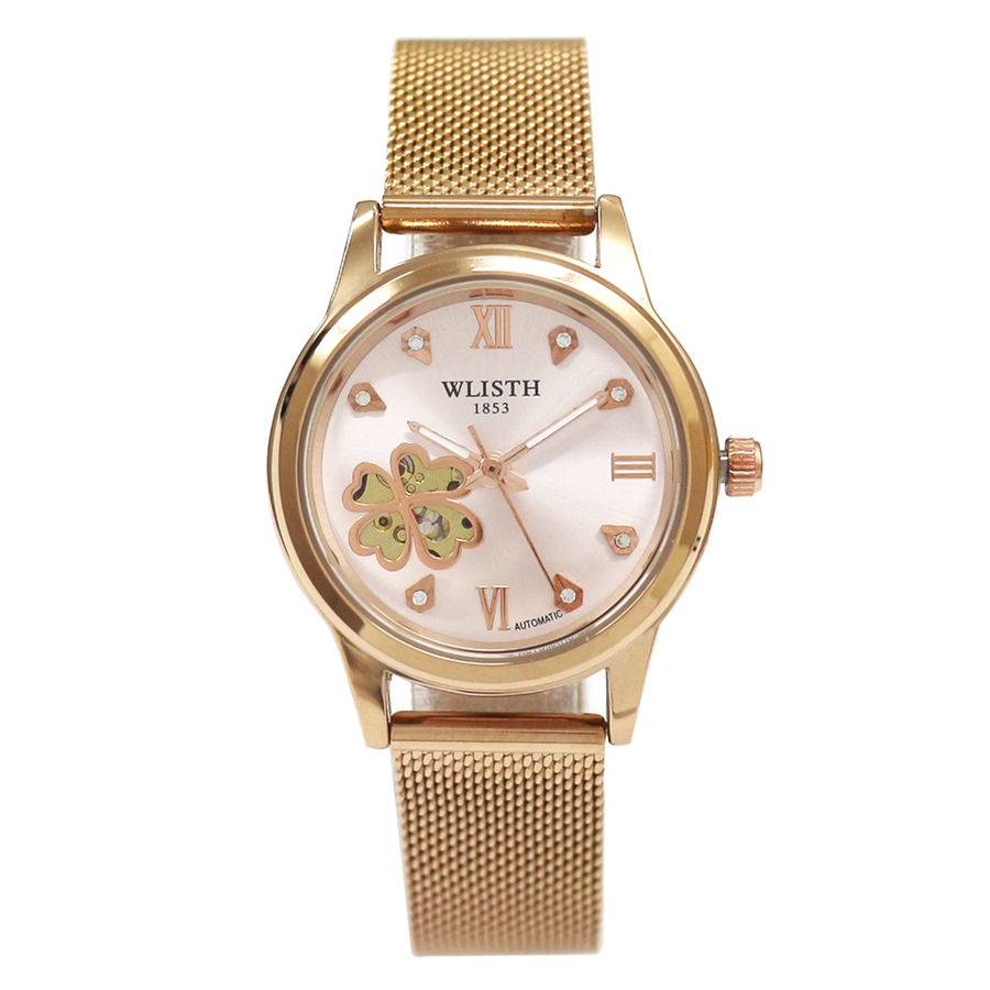 自動巻き腕時計 クローバー ラインストーンインデックス