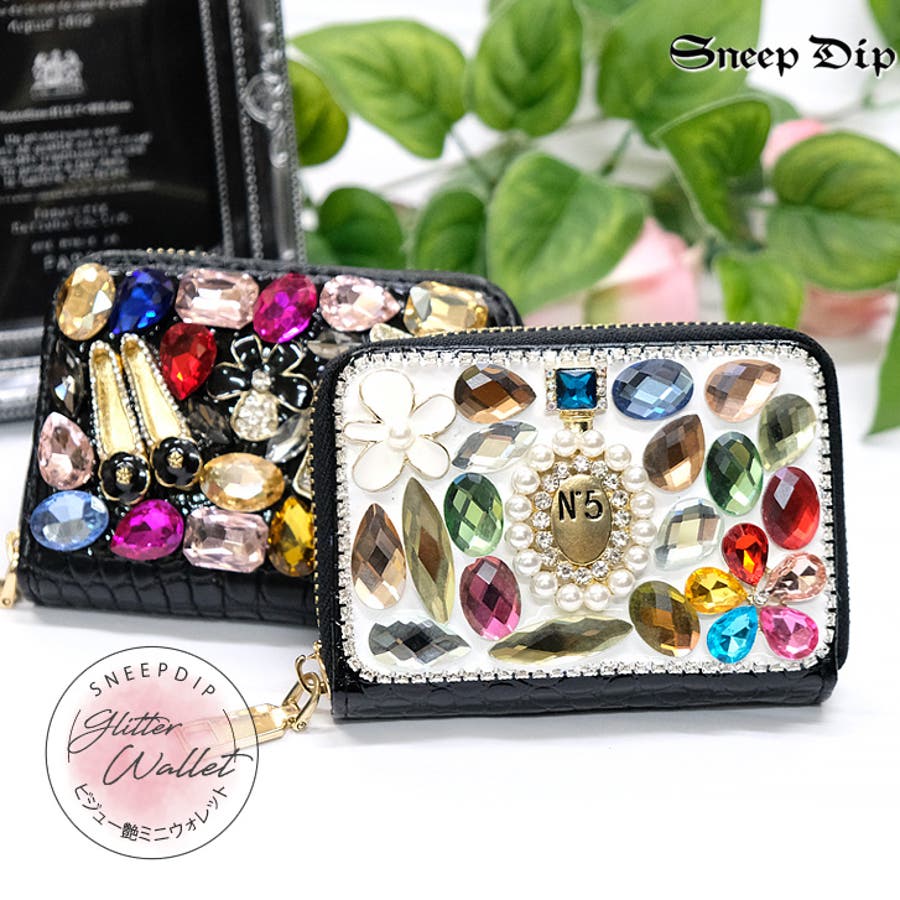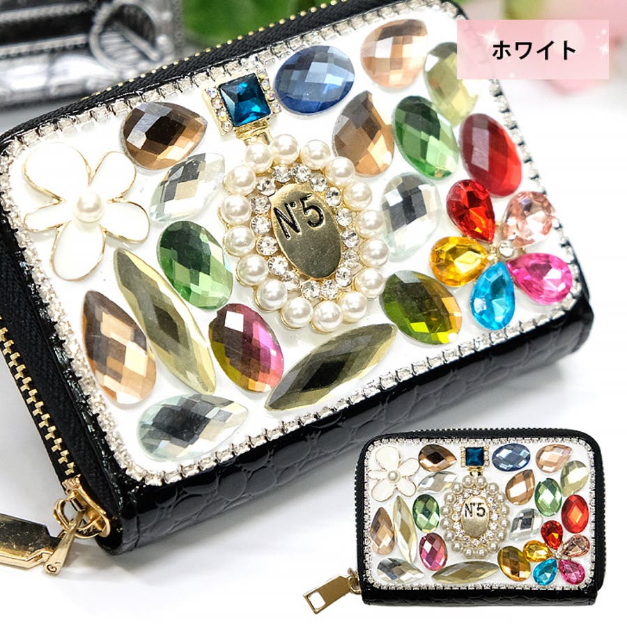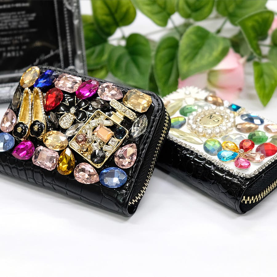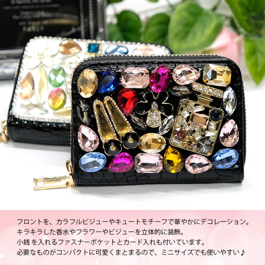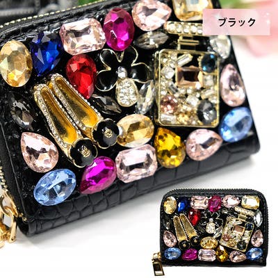 | プチサイズのデコウォレット。カラフルなビジューがポイントで、小さいけどコーデのワンポイントとしてしっかりアピールできます。 |
