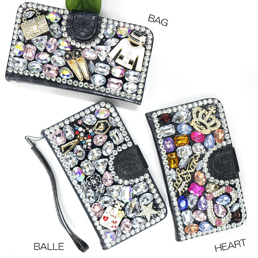 | キラキラビジューとデコでスマホをもっとかわいく♪手帳型で大切な液晶部分も傷から守ります。人と違うスマホケースをお探しの方にオススメです! |