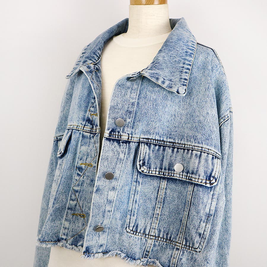 | 商品番号: 17044 商品名: カットオフGジャン 商品説明: ビックシルエット&ショート丈が今っぽいカジュアルGジャン。裾とスリーブのカットオフもこなれ感のあるデザインを後押し。袖口と後ろの裾のタックによる、シルエットバランスもキュート! |