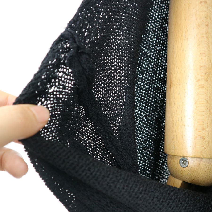 | 素材等 | 本体: アクリル100% 生地の伸縮性 : あり 生地の厚み : 薄手 生地の透け感 : あり 裏地 : なし |