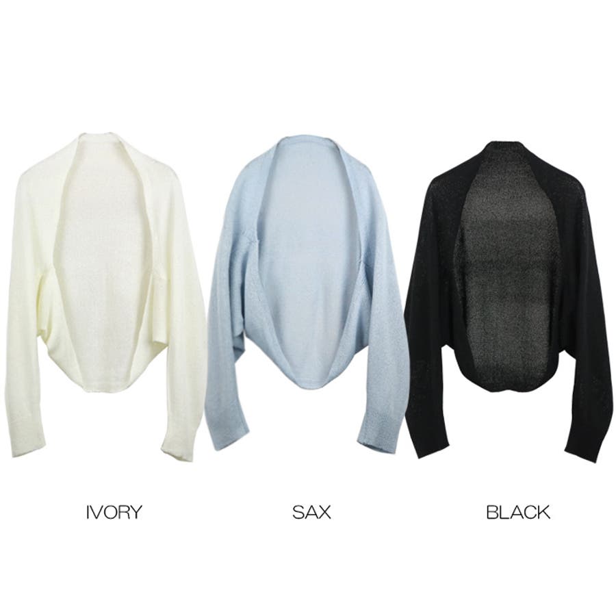 | ビーチや旅行にも、持って行きやすいサイズ感のボレロです。透け感があります。 |