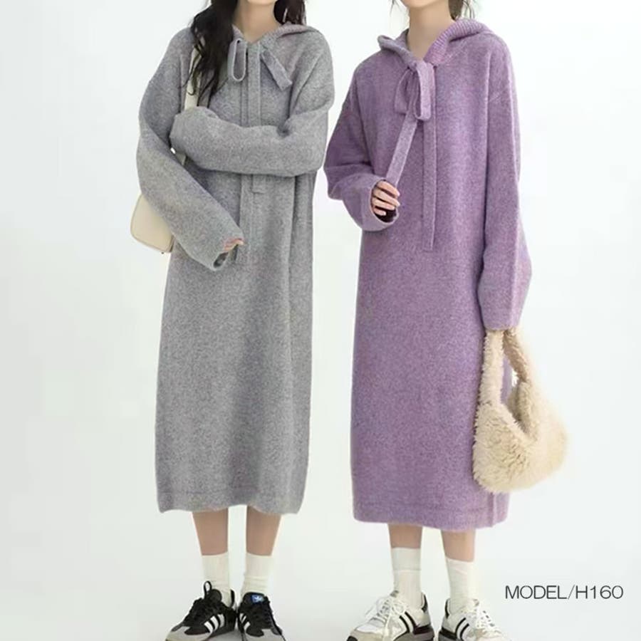 | 商品番号: 17221 商品名: ロングフーディーニットワンピース 商品説明: ルーズシルエットのニットパーカーワンピース。太めのフーディーリボンがフェミニンなポイント。体のラインを拾いにくいシルエットで、気軽に着れるのも嬉しい♪ボリューム感のあるスリーブとフードが愛らしさをプラスするフェミカジワンピ。 |