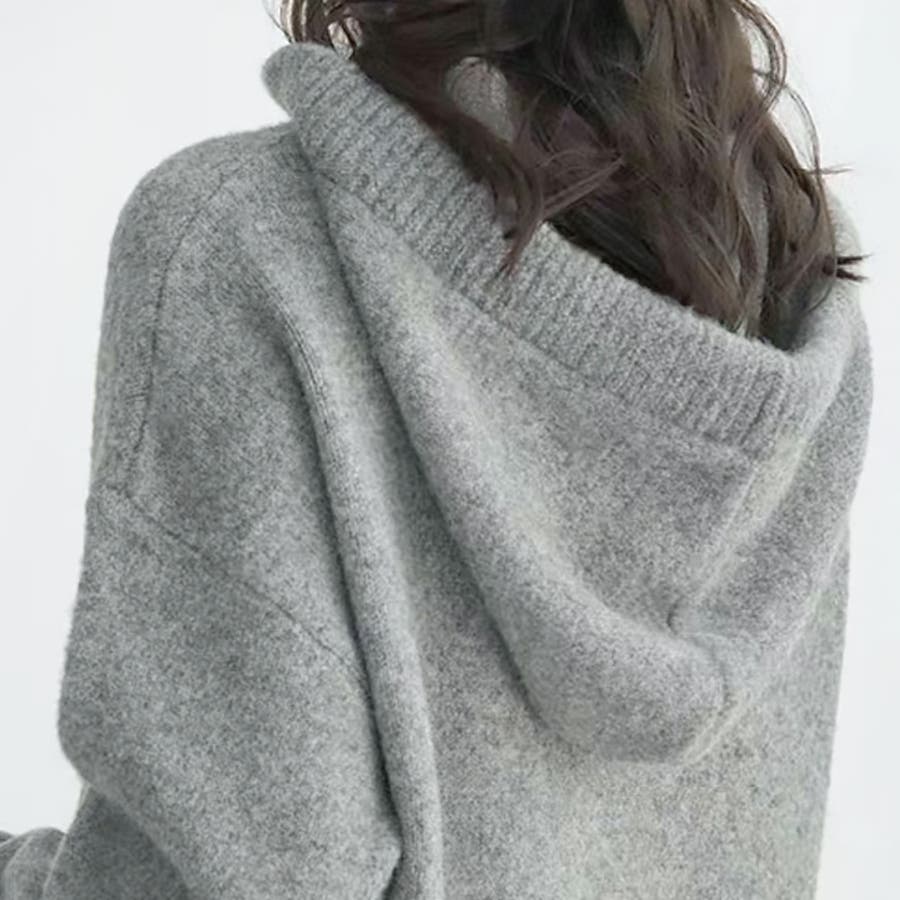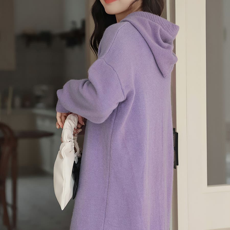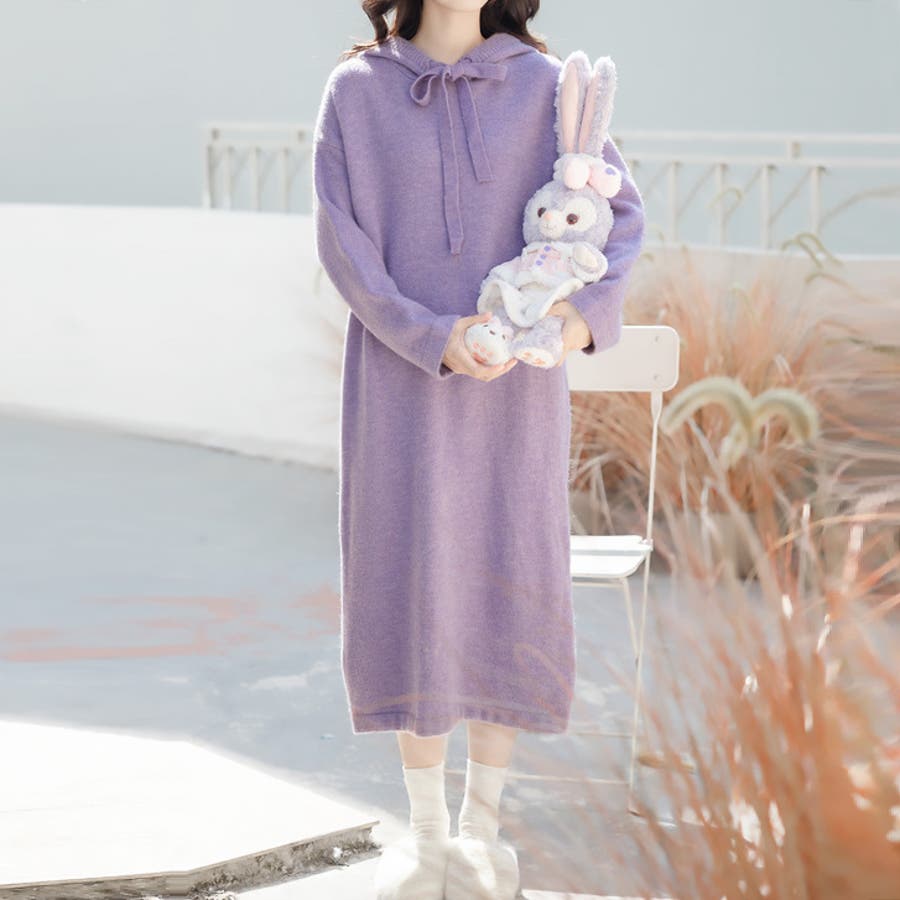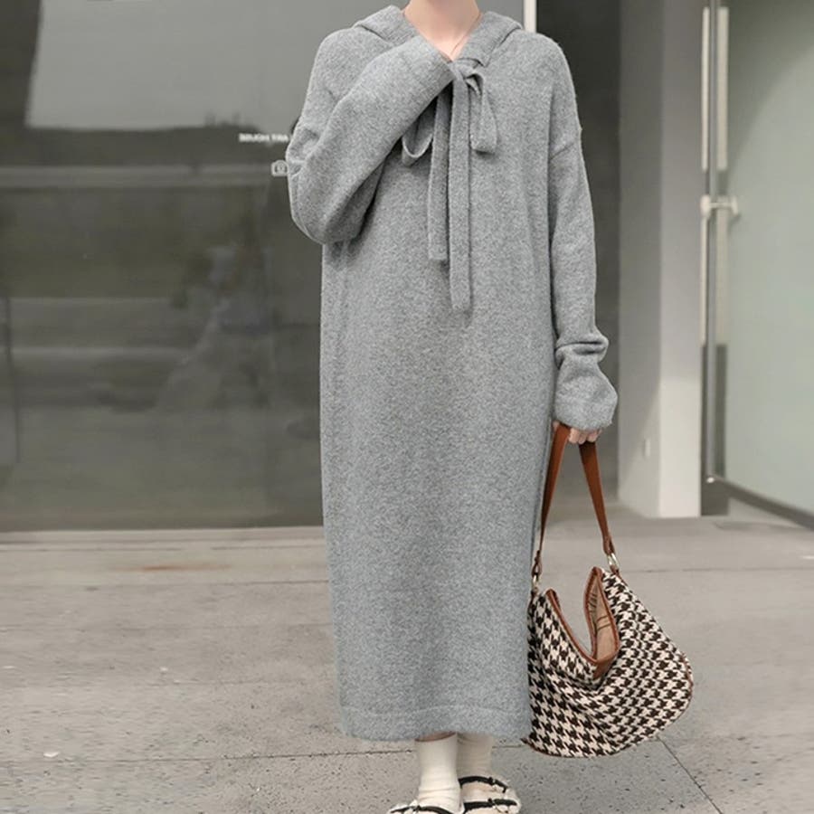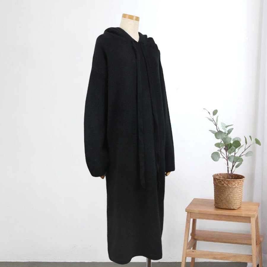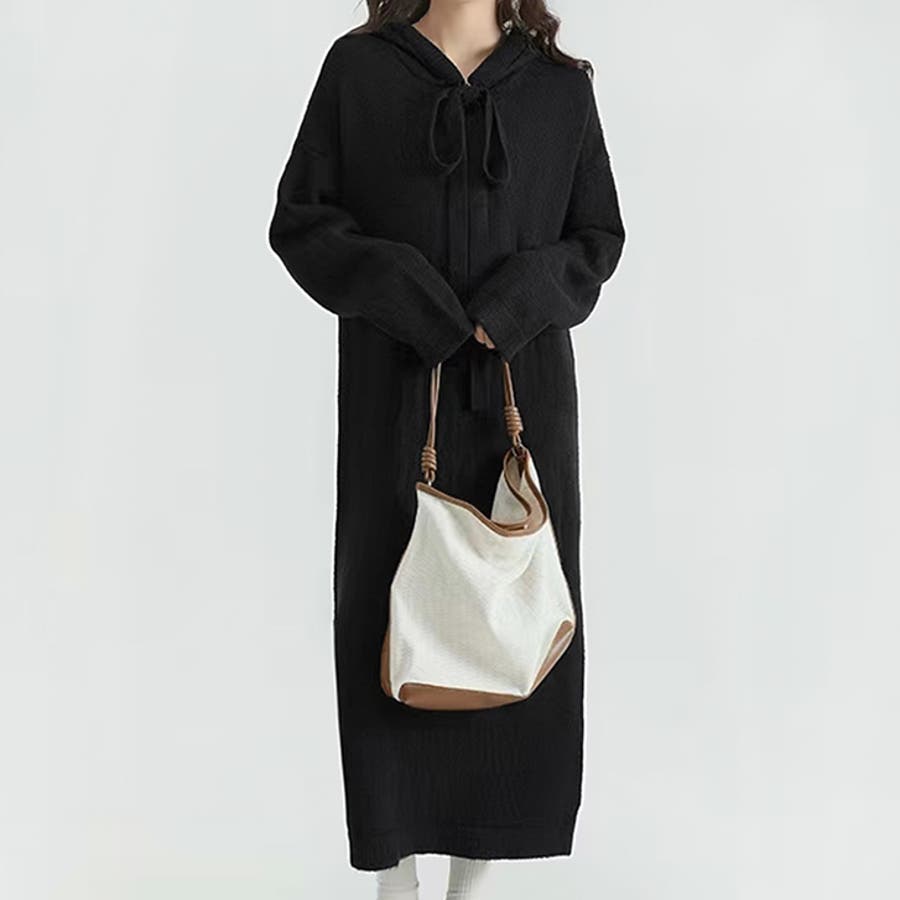 【17221】ロングフーディーニットワンピース