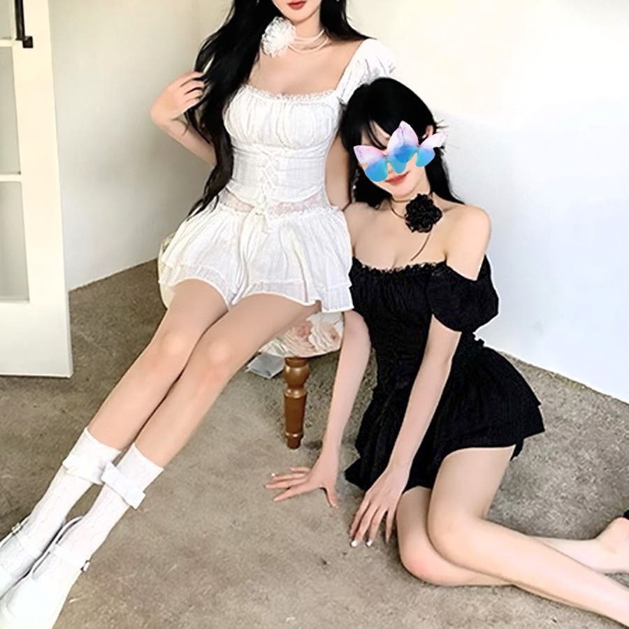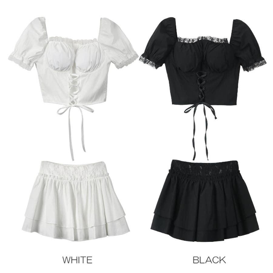 | 商品番号: 17316 商品名: レースアップトップス&ティアードスカート 商品説明: レースディテールや、編み上げリボンがフェミニンなセットアップ。オフショル&ミニスカで夏にぴったりなヘルシーデザイン♪胸パッド付きでそのまま着ることができます。シングルで使えるので、コーデの幅も広がります。 |