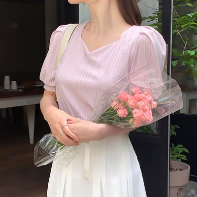 【17321】ハートネックパフスリーブT