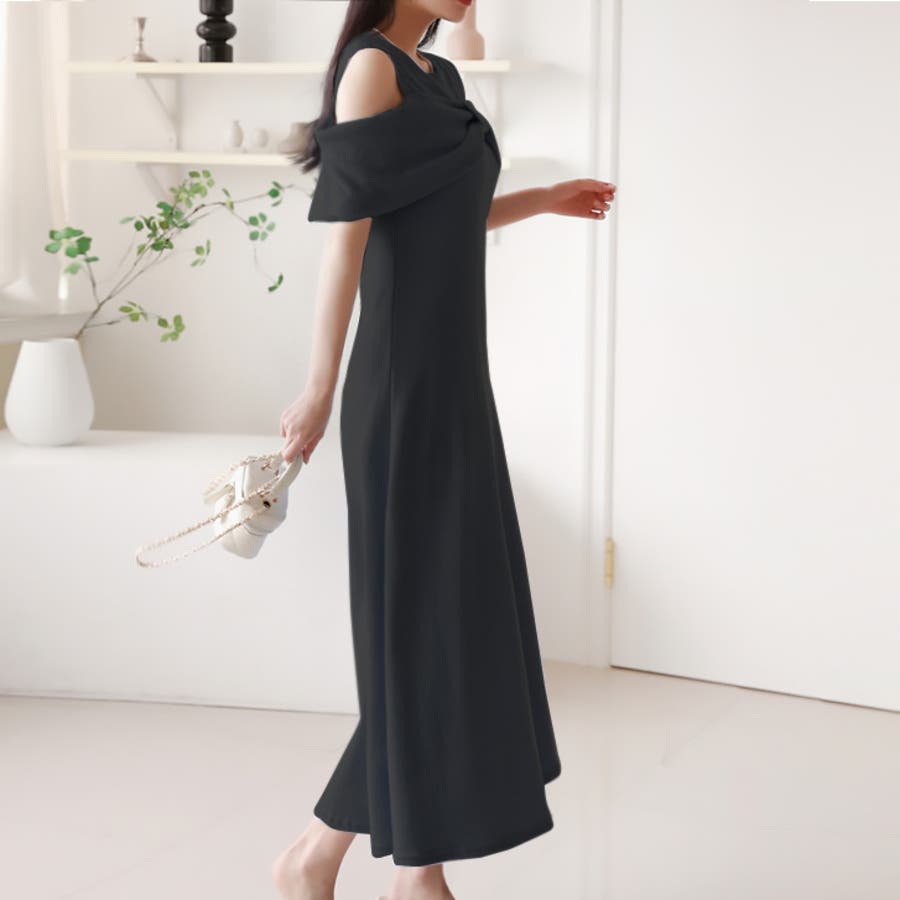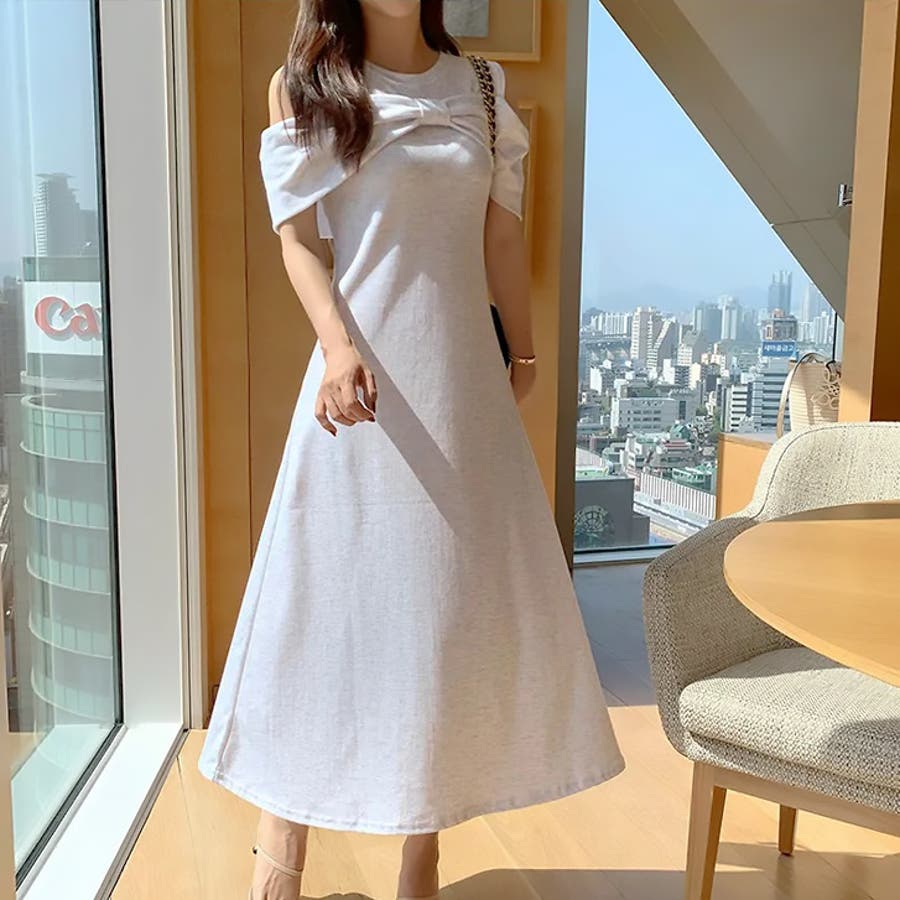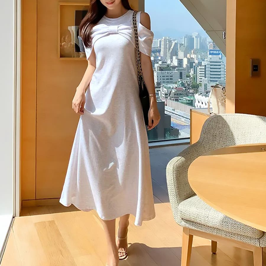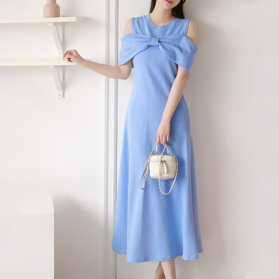 | 商品番号: 17361 商品名: リボンオフショルロングワンピース 商品説明: フロントの大きなリボンが目を引くワンピース。大胆すぎないオフショルで、あざとかわいいを演出します。ご近所でも、リゾートでもマッチする、カジュアルなこなれ感が魅力!そのままでもサマになるうえ、小物使いでアクセントをきかせるなど、自分なりのアレンジでマルチな活躍が期待できそう♡ |