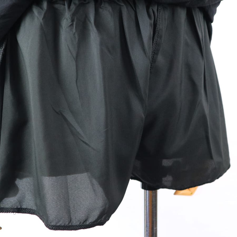 素材等 | 本体: ポリエステル100% 生地の伸縮性 : なし 生地の厚み : 薄手 生地の透け感 : あり 裏地 : 袖あり、スカートあり(インナーパンツ) トップス : プルオーバー スカート : ウエストゴム、インナーパンツ |