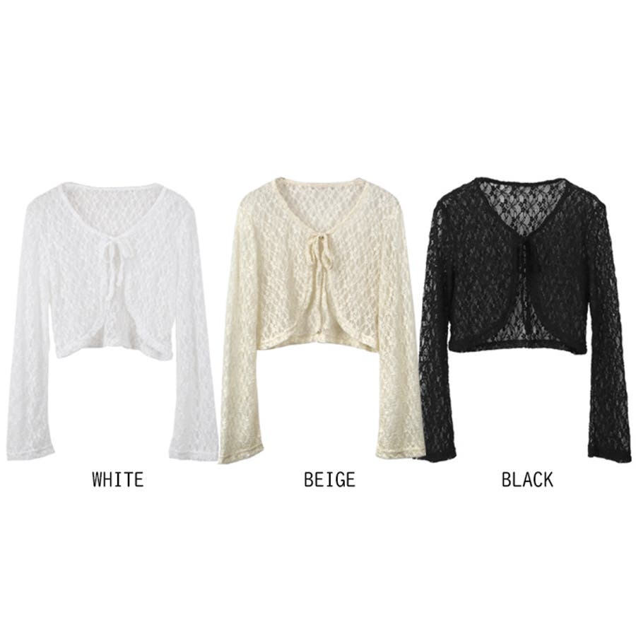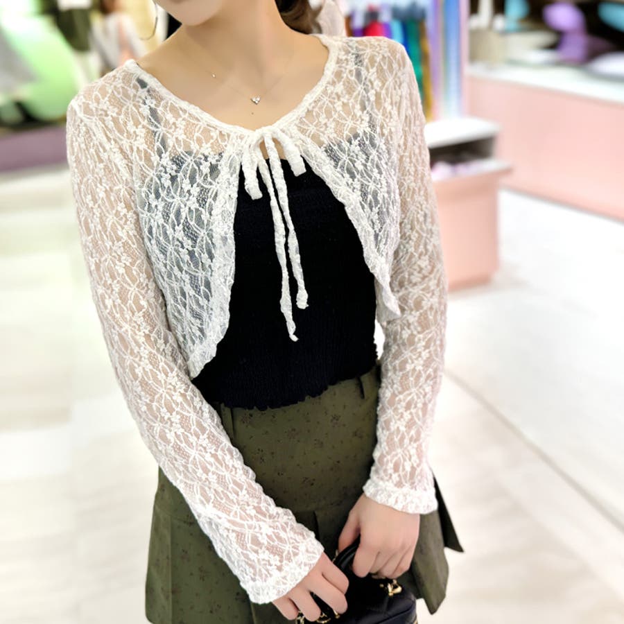 | 商品番号: 17390 商品名: レースリボンボレロ 商品説明: シースルーで可憐に仕立てた、リボンボレロ。あらゆるスタイリングに好バランスにマッチする、コンパクトなシルエットも魅力!華奢感もアップ、気になる二の腕も隠せる嬉しいボレロです♪ |