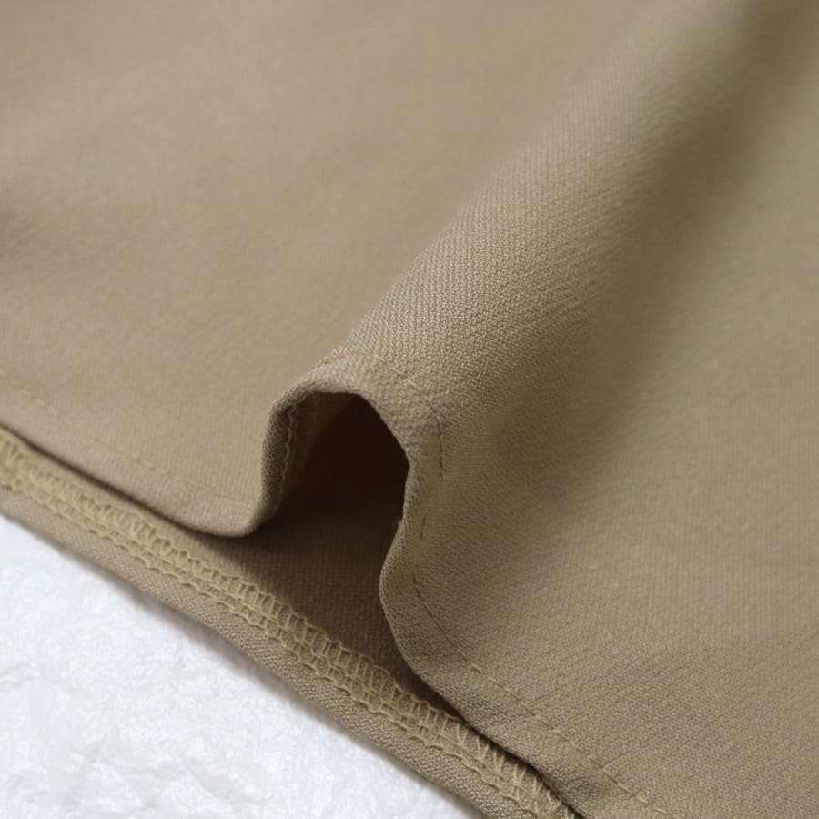 | 素材等 | 本体: ポリエステル100% 生地の伸縮性 : なし 生地の厚み : やや薄手 生地の透け感 : アイボリーあり 裏地 : なし その他 : ベルト取り外し可、ボタンで着脱 |