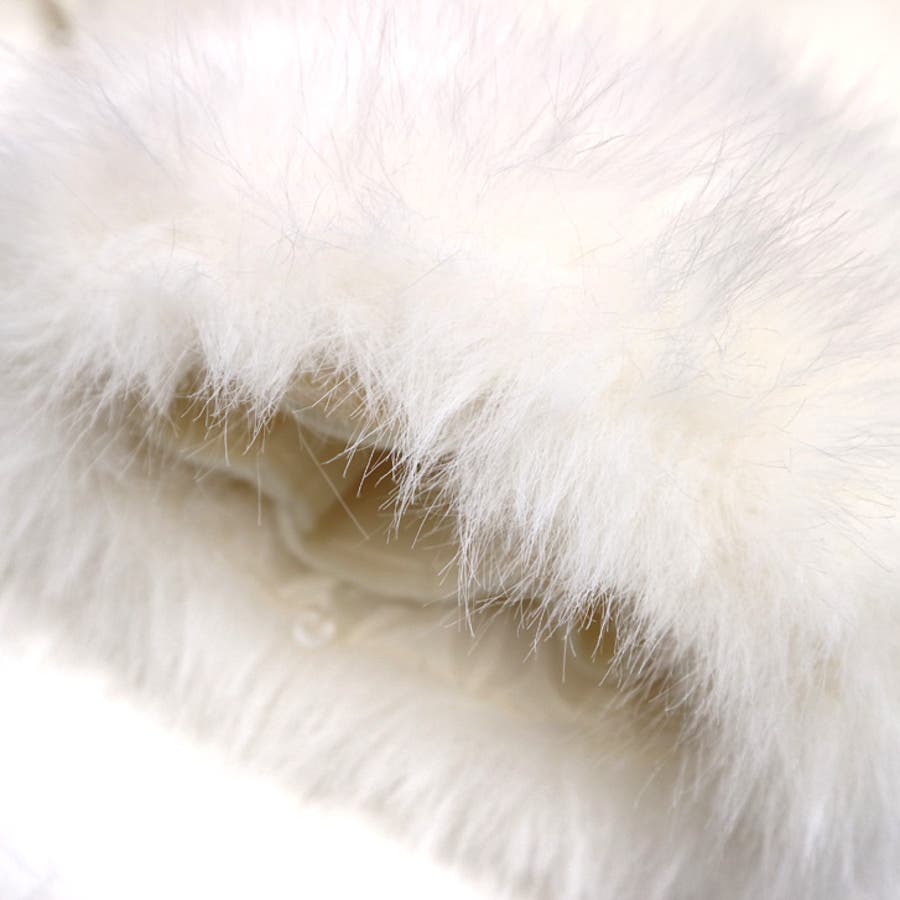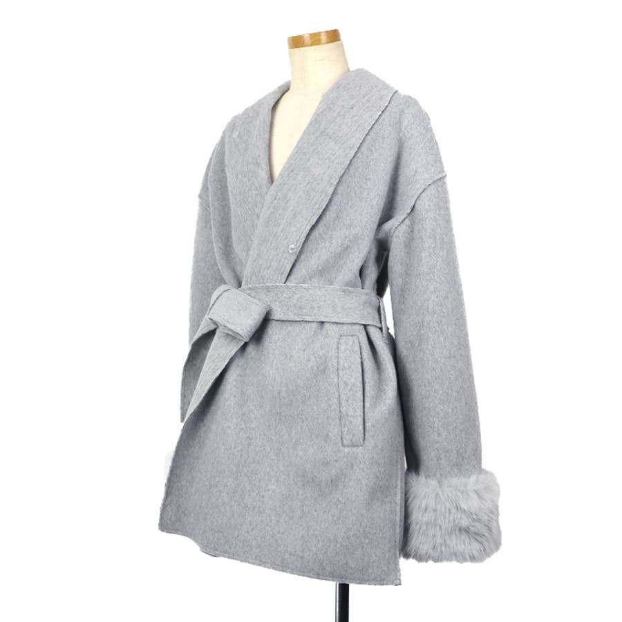 | 素材等 | 本体: ポリエステル100% 生地の伸縮性 : なし 生地の厚み : やや厚手 生地の透け感 : アイボリーあり 裏地 : なし その他 : 襟と袖口のファー取り外し可、ポケット付き、ベルト付き |