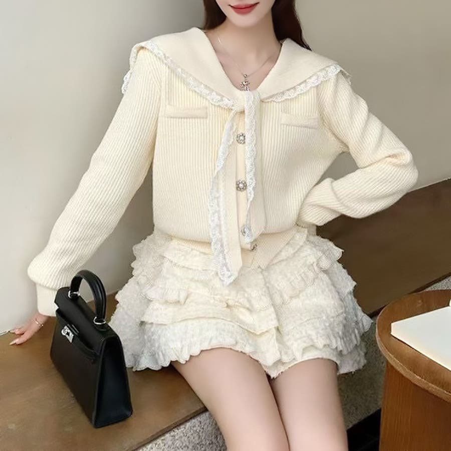 商品番号: 17462 商品名: レースリボンセーラーニット 商品説明: ふんわりとしたセーラーが、フェミニンなニットトップス。レースが施されたリボンや、キラキラボタンも目を引くポイントです♡着るだけで、フェミニンなガーリースタイルを演出します。 |