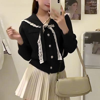 【17462】レースリボンセーラーニット