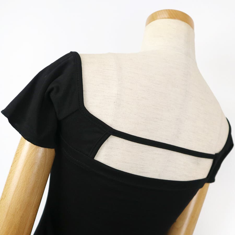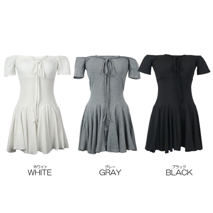 | モデルの身長は167センチです。カップ付きでそのまま着ることができます。オフショルにしたり、ひもを垂らしたりとアレンジ自在なワンピです。 |