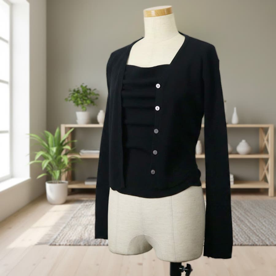 | サイズ | 表記サイズ: フリーサイズ(ワンサイズ) カーディガン 着丈 : 44 cm 肩幅 : 36 cm 身幅 : 38 cm 袖丈 : 55 cm 袖口 : 9.5 cm 裾幅 : 35 cm キャミソール 着丈 : 44 cm アームホール : 17 cm 身幅 : 32 cm 裾幅 : 28 cm ※製造上の問題により1~2cm程度の誤差が生じる場合がございます。予めご了承下さい。 |