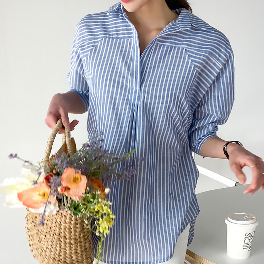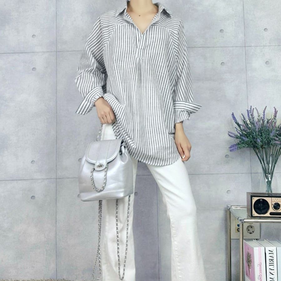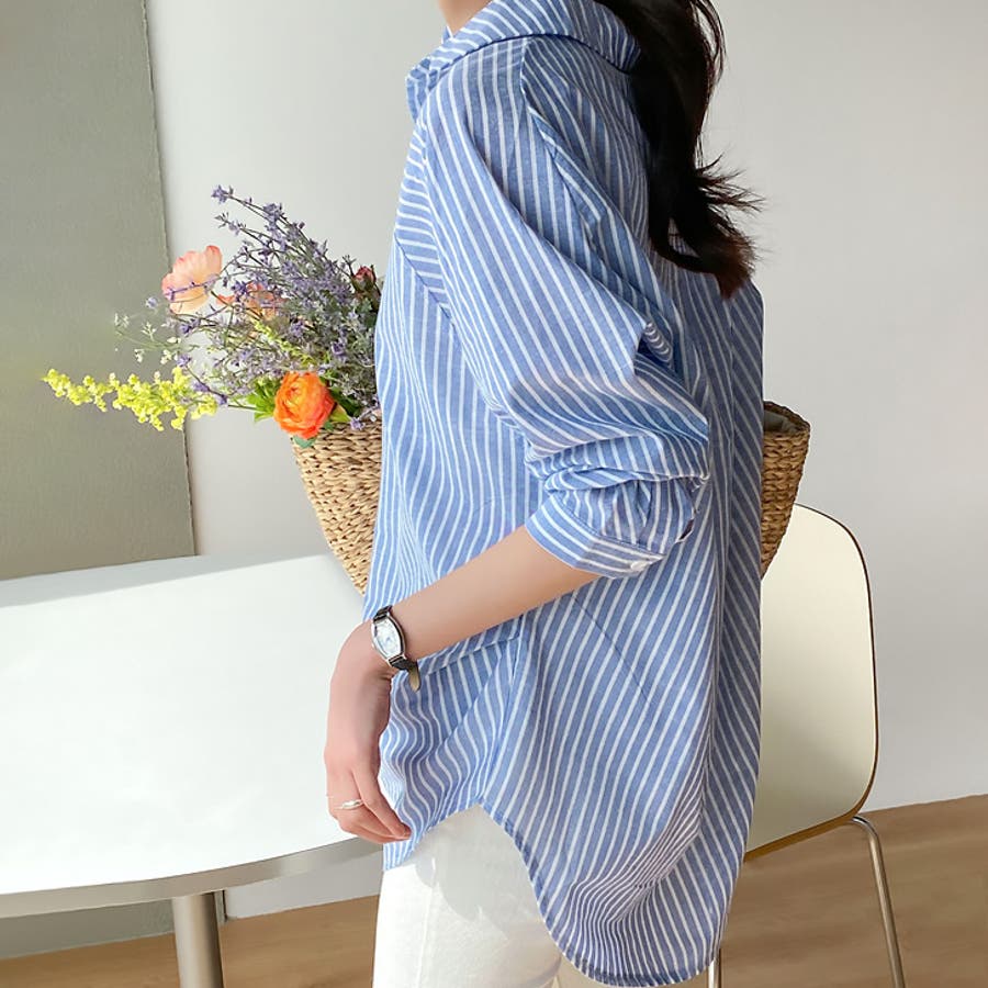 商品番号: 17517 商品名: タックストライプシャツ 商品説明: 大人の抜け感を楽しめるストライプシャツ。ほんのりシアー感があり、爽やかカジュアルが楽しめます。風通しが良い柔らかな綿素材で、夏にも着用していただけます。気になる腰周りもしっかりカバーしてくれる嬉しいシルエット♡ |