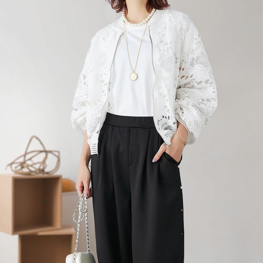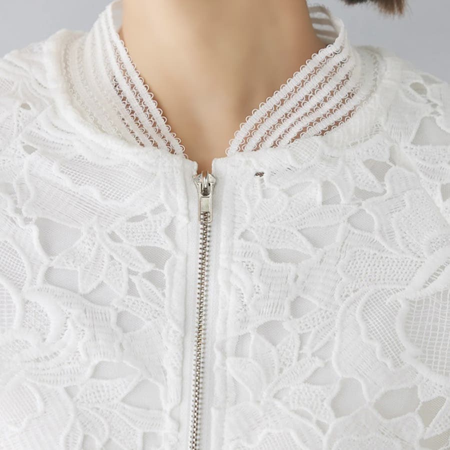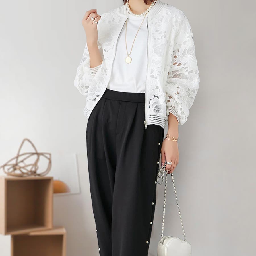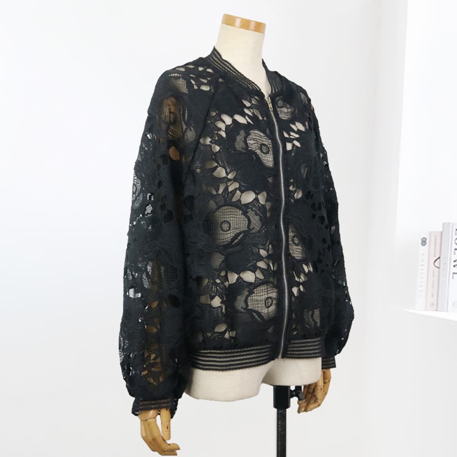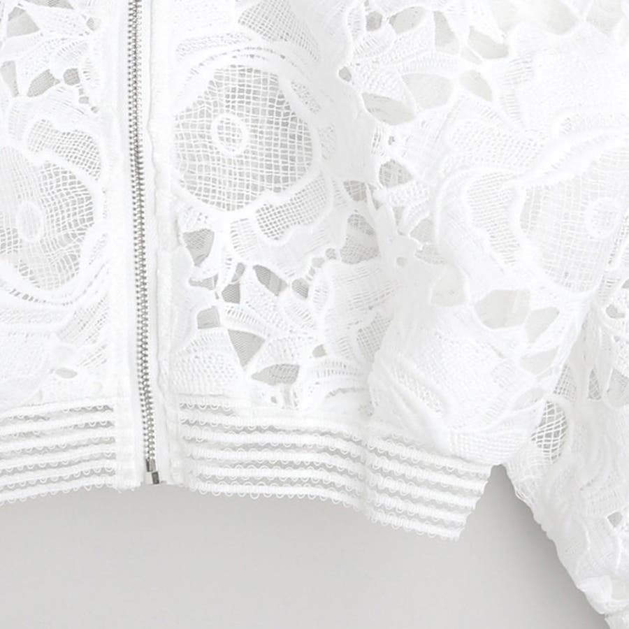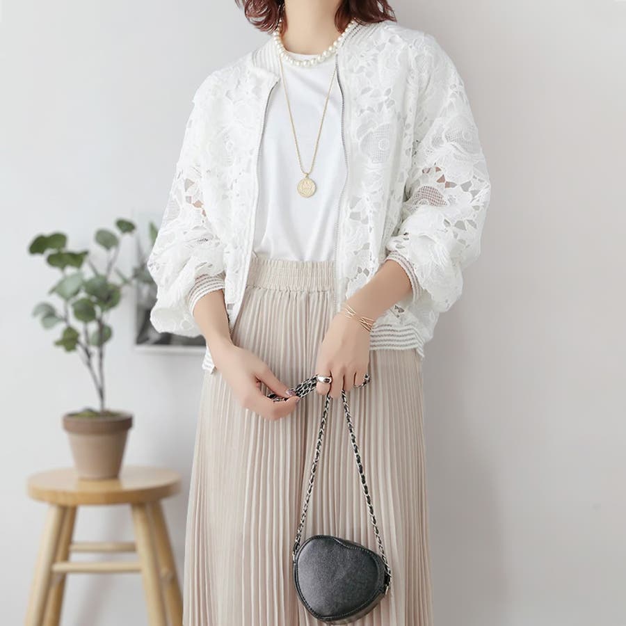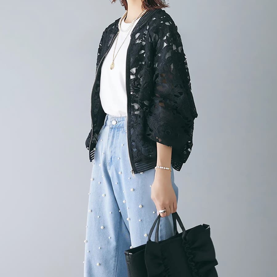 商品番号: 17519 商品名: コード刺繍レースシアーブルゾン 商品説明: スポーティーな印象のブルゾンを、繊細ななレースで仕立てたフェミカジアイテムです。シアー感のある素材に立体的なコード刺繍が華やかでスタイリングのアクセントに。カジュアルからフォーマルまで幅広く着回せるので、様々なシーンでお使いいただけます。着るだけでワンランク上のコーディネートが楽しめます♡ |