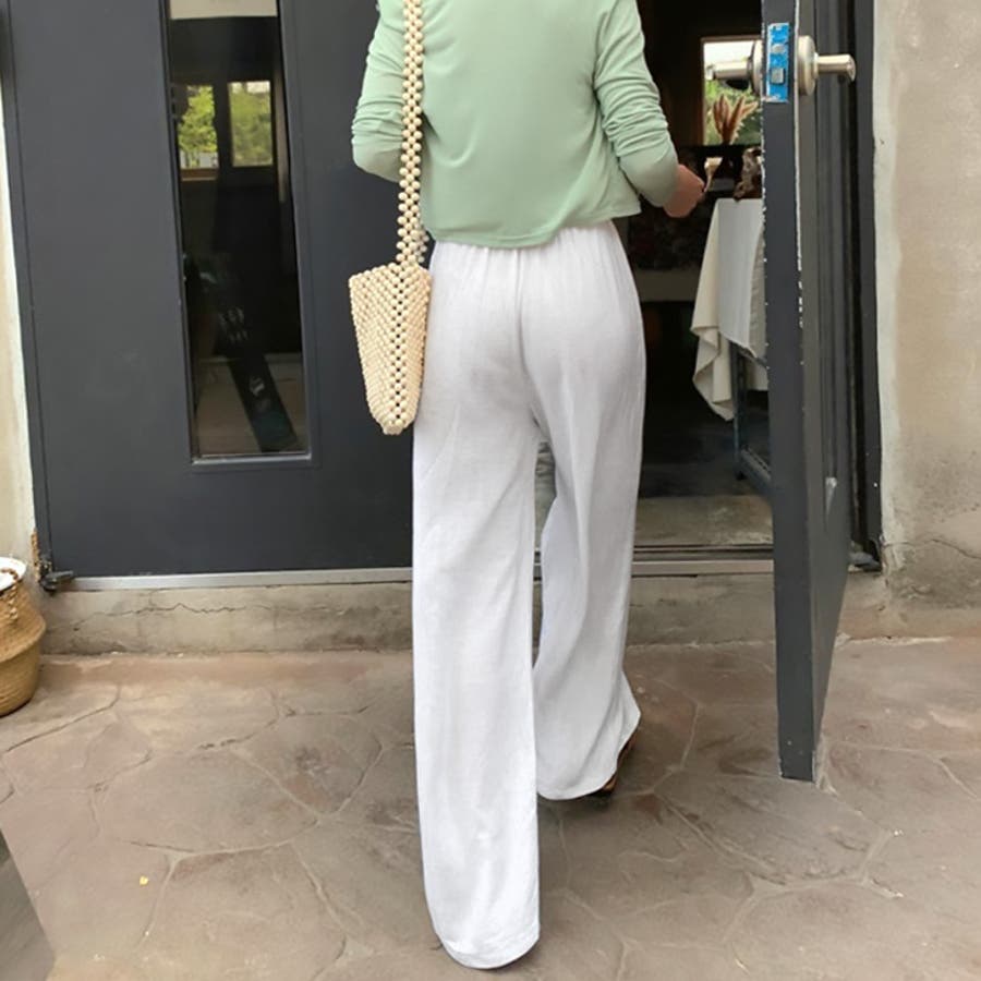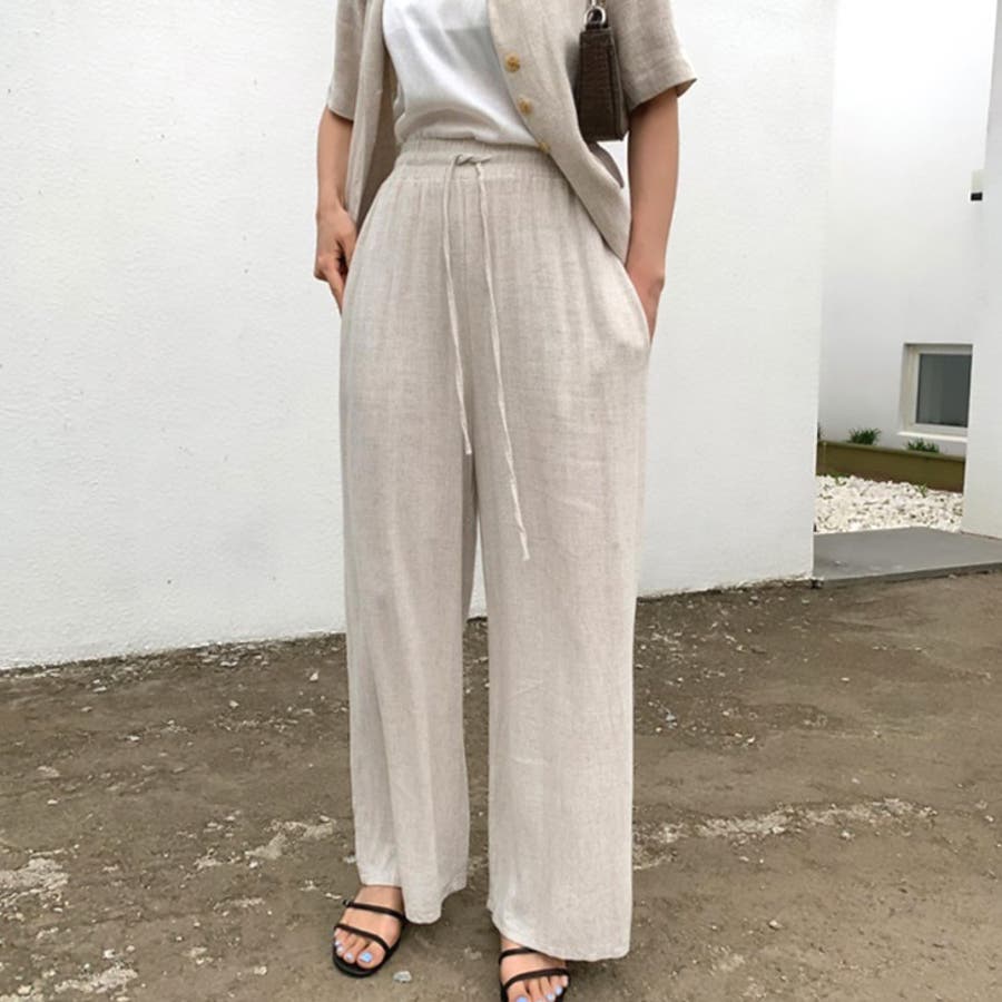 | 商品番号: 17522 商品名: リネン風ワイドパンツ 商品説明: ドライタッチの軽い素材が涼しげなイージーパンツ。ルーズなシルエットとウエストゴムがリラックスした穿き心地で、大人の抜け感を演出します。シンプルなデザインはどんなトップスとも合わせやすく、幅広く使えるアイテム! |