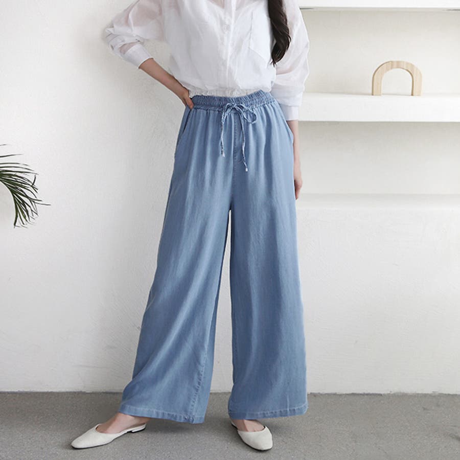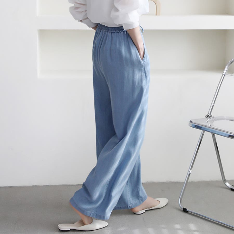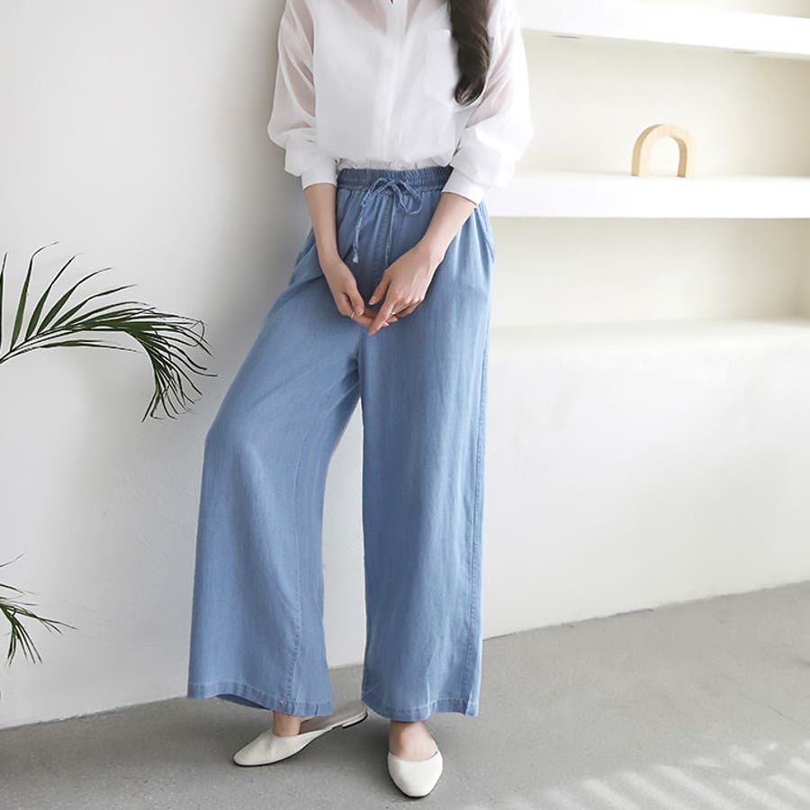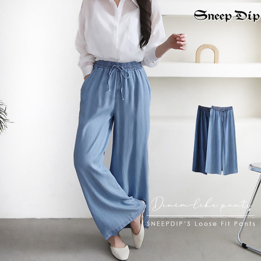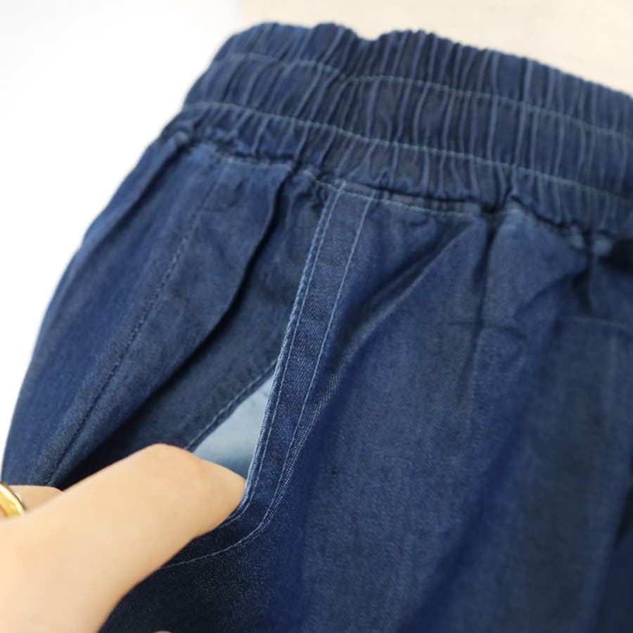 | 商品番号: 17523 商品名: デニム風ワイドパンツ 商品説明: ゆったり&ウエストゴム仕様でも、柔らかな穿き心地の快適イージーパンツ。程よいフィット感と脚のラインを拾いすぎないシルエットで抜け感ある1本に仕上げました。合わせるトップスを選ばず、着回ししやすいのも嬉しいポイント! |