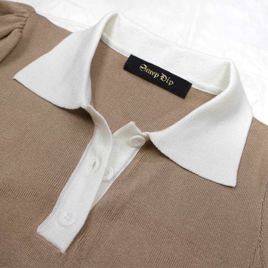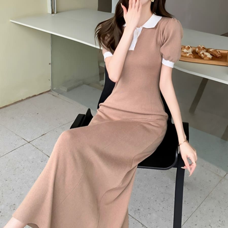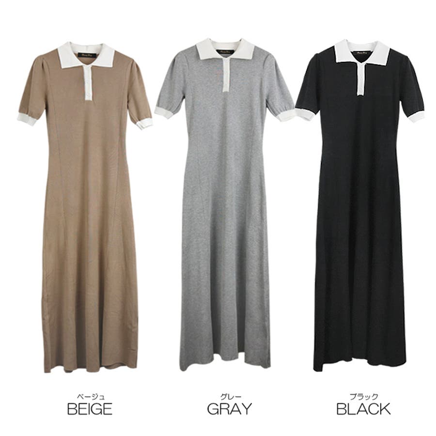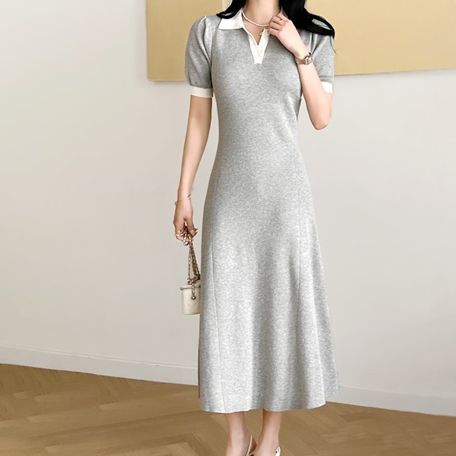 【17524】バイカラーニットポロワンピース