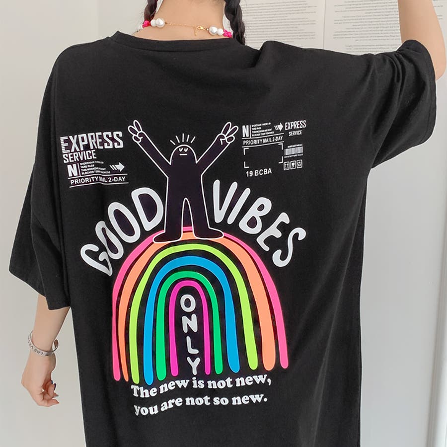 | 商品番号: 17531 商品名: バックプリントTシャツワンピース 商品説明: 後ろ姿までかわいい、ゆるっとルーズなカラフルプリントワンピース。オーバーサイズでリラクシーな着心地ながら、印象的なバックプリントがカジュアルなこなれ感をプラス。さりげなく体型カバーもしてくれる嬉しいアイテムです◎ |