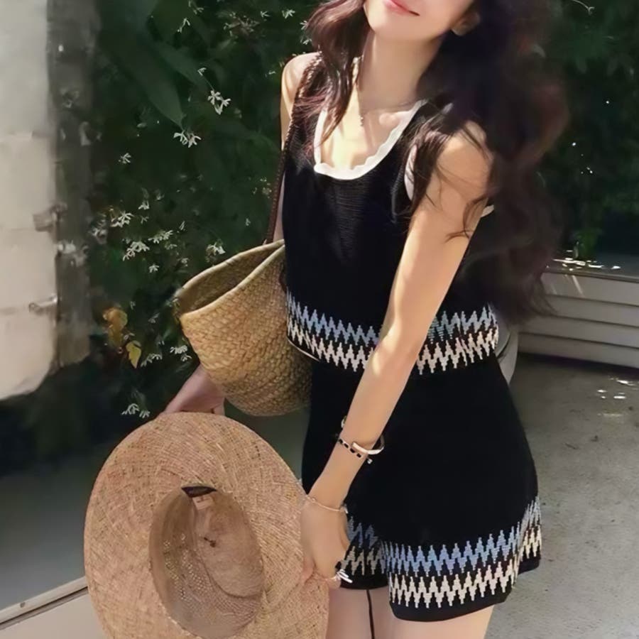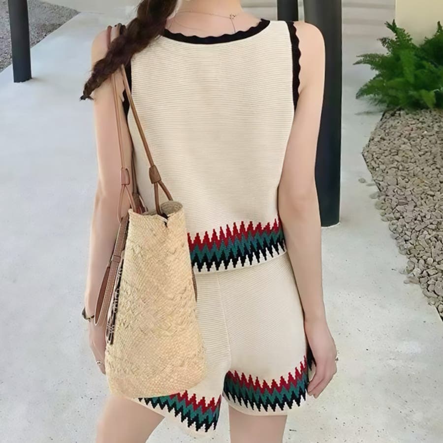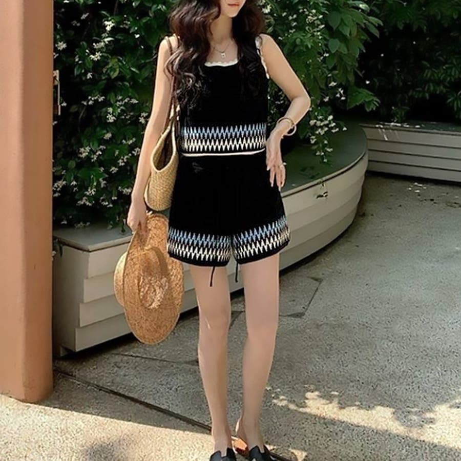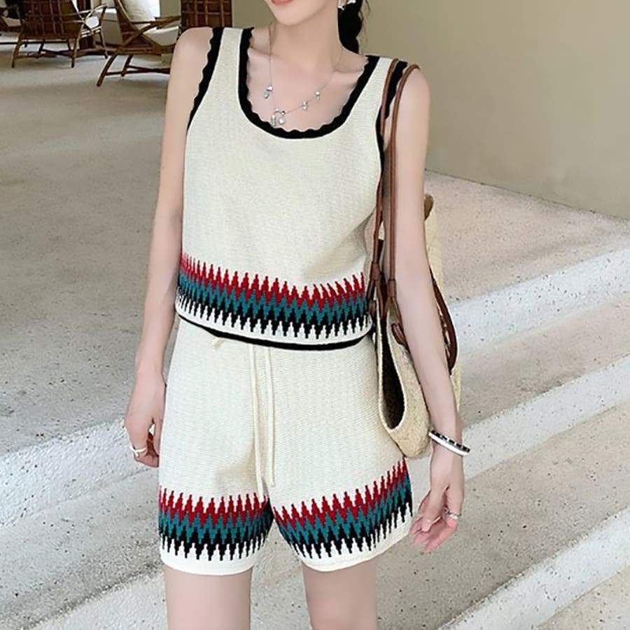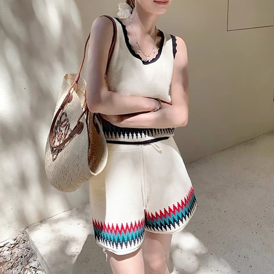 | 商品番号: 17545 商品名: ボヘミアンタンク&ショートパンツ 商品説明: エスニックな雰囲気のニットタンクとワイドショートパンツのセットアップ。ワイドパンツと、コンパクトな着丈のバランスがキュート。こなれカジュアルで夏に映えるSETアイテムです♡ |