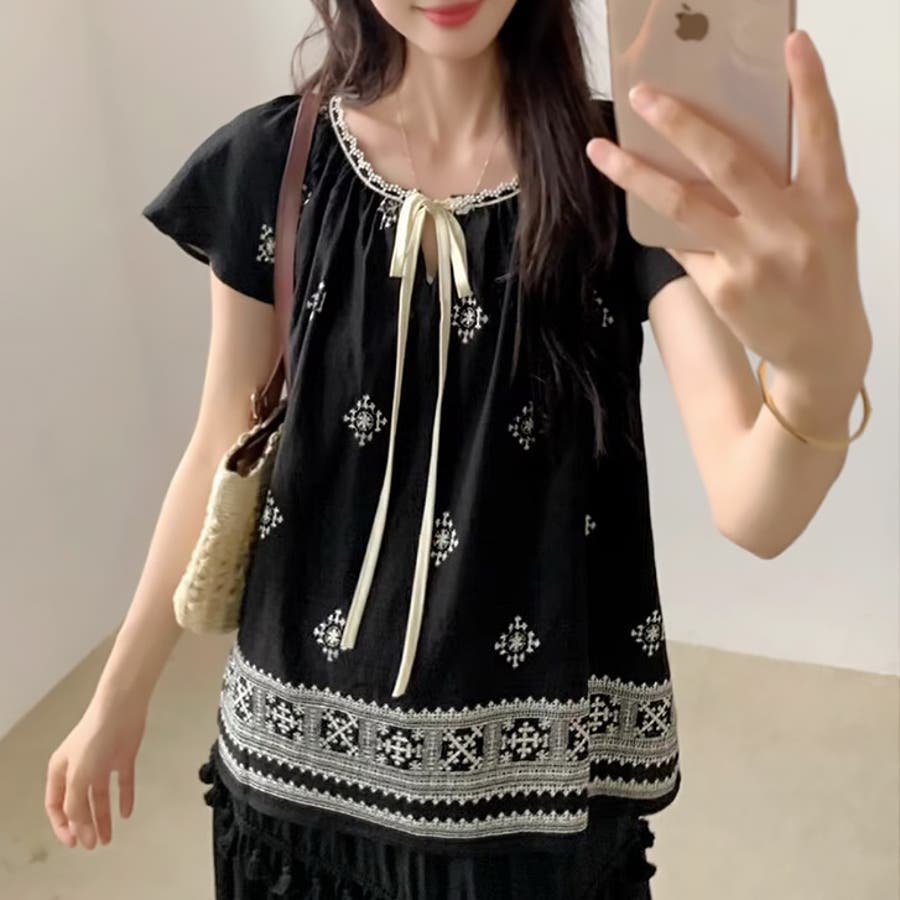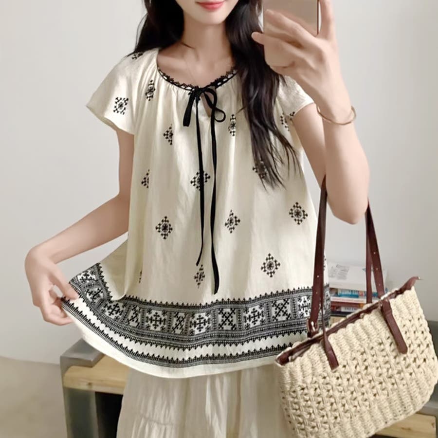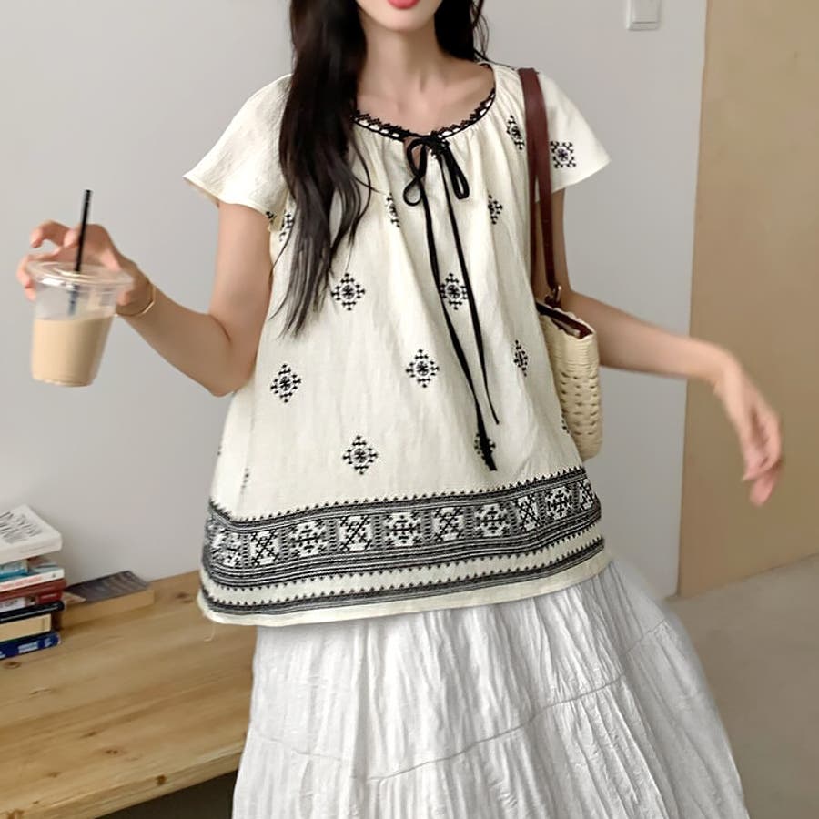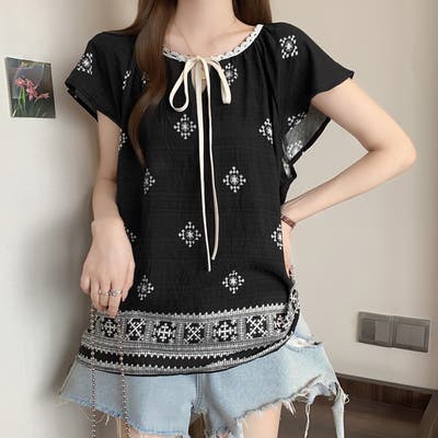 【17551】レトロエスニックブラウス