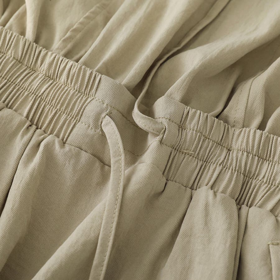 | 素材等 | 本体: ポリエステル100% 生地の伸縮性 : なし 生地の厚み : 普通 生地の透け感 : なし 裏地 : あり その他 : ウエストゴム、ポケットあり、首後ろゴム |