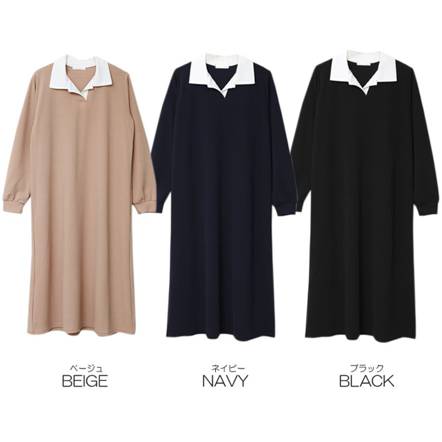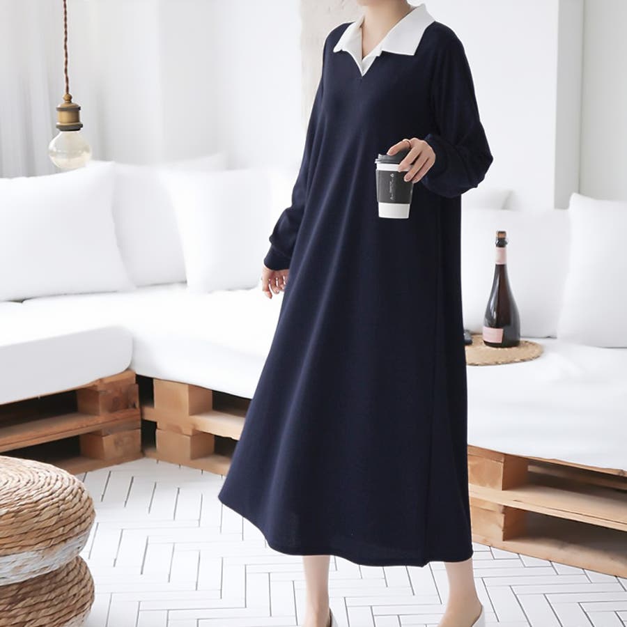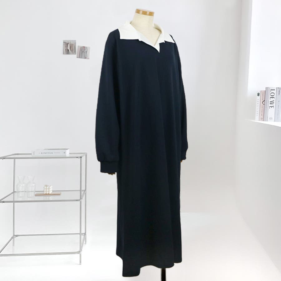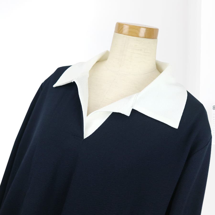 【17568】バイカラーポロシャツワンピース