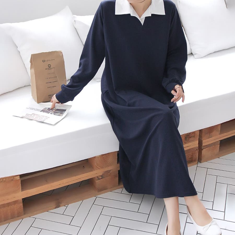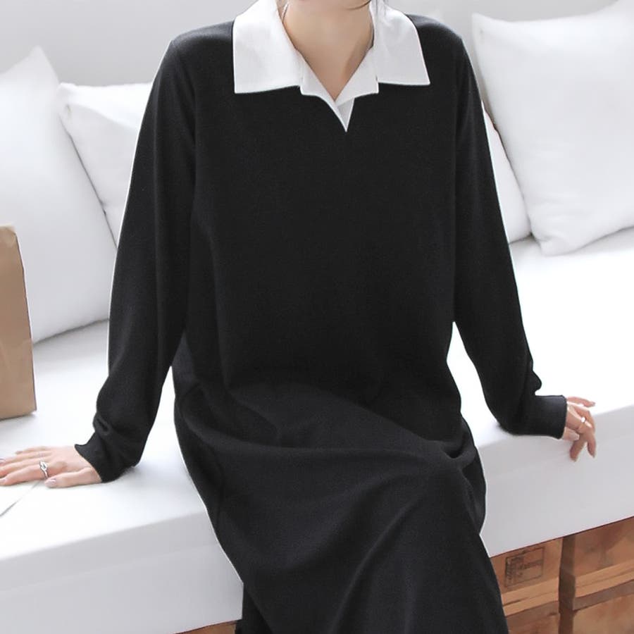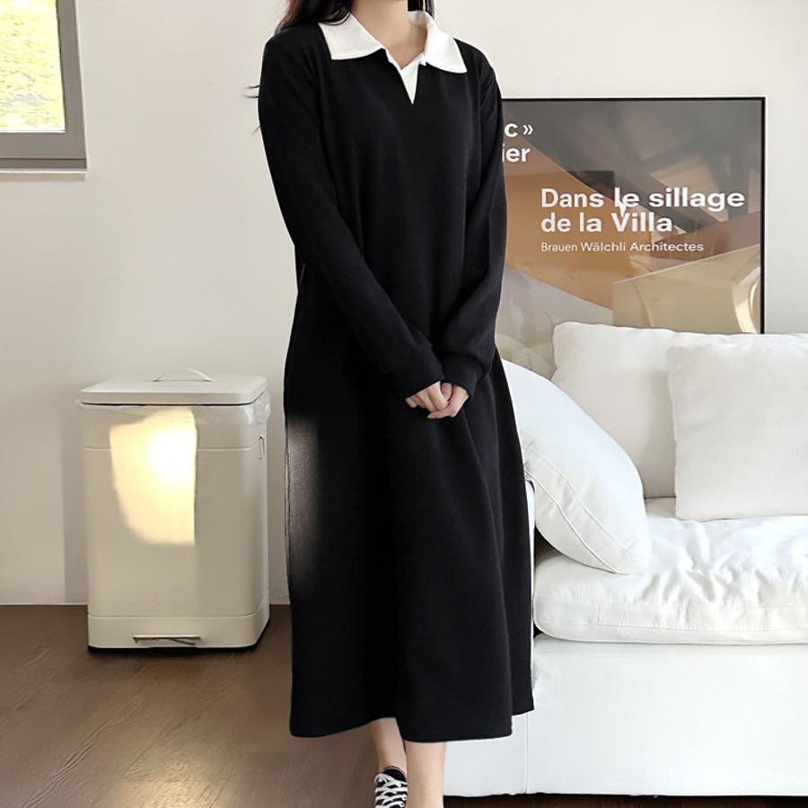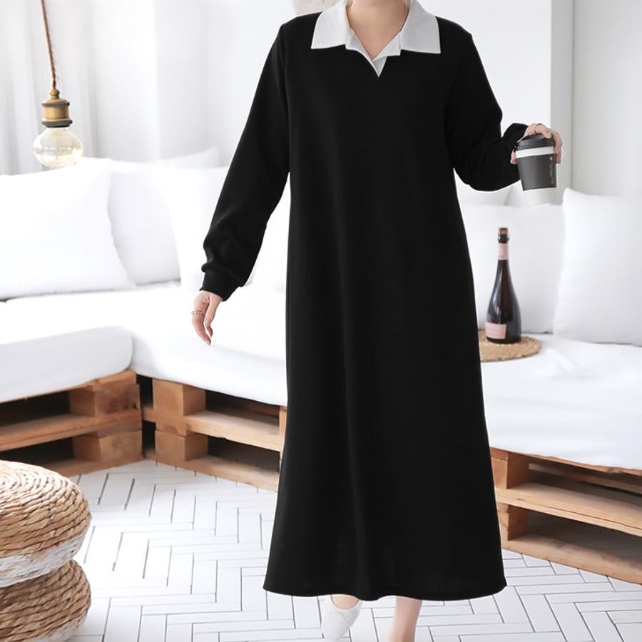 【17568】バイカラーポロシャツワンピース