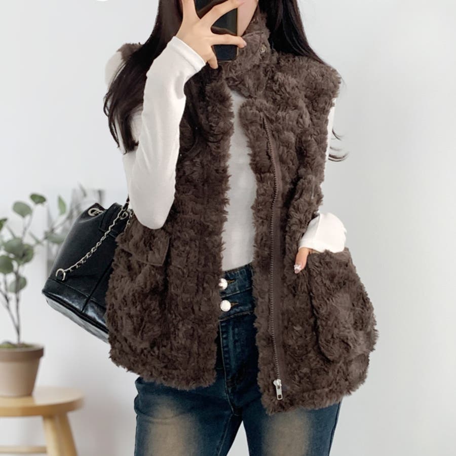 | 商品番号: 17596 商品名: エコファーベスト 商品説明: 柔らかく、ふわもこの、エコファーを使用したスタンドカラーのファーベスト。パンツでもスカートでもマッチし、コートやダウンを着るほど寒くない時期のアウターとして、存在感抜群の一枚です。コーディネートにプラスワンするだけで、シーズンらしい華やかさのあるスタイリングに決まります。 |