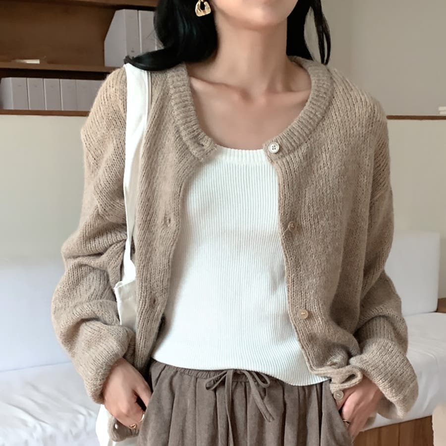 | 商品番号: 17598 商品名: ルーズフィットカーディガン 商品説明: 裾や袖口がキュッとしぼられた、シルエットのかわいいニットカーデ。全体的にゆったりとしたシルエットで、ラフな着こなしを楽しめます。シンプルですが、インナー次第で様々な表情を楽しめる、レイヤードスタイルにぴったりのアイテムです。 |