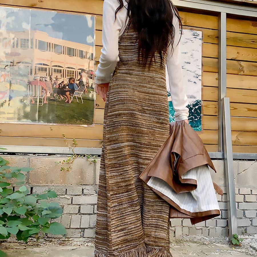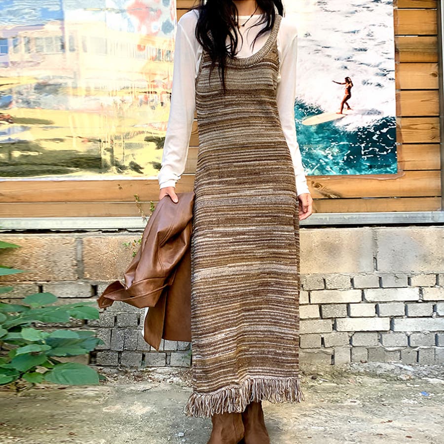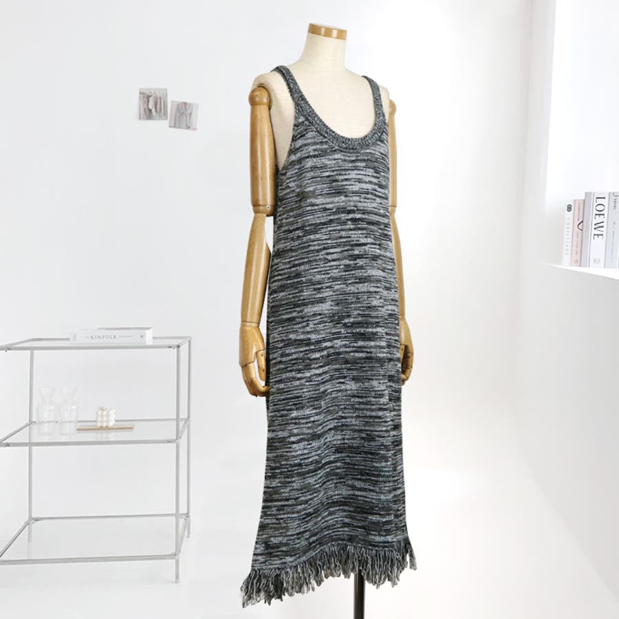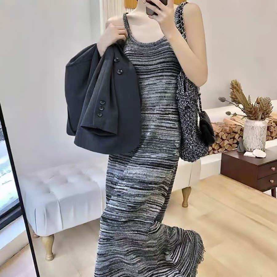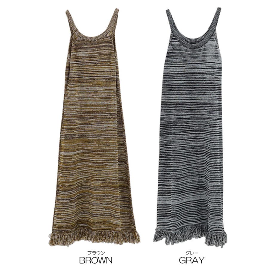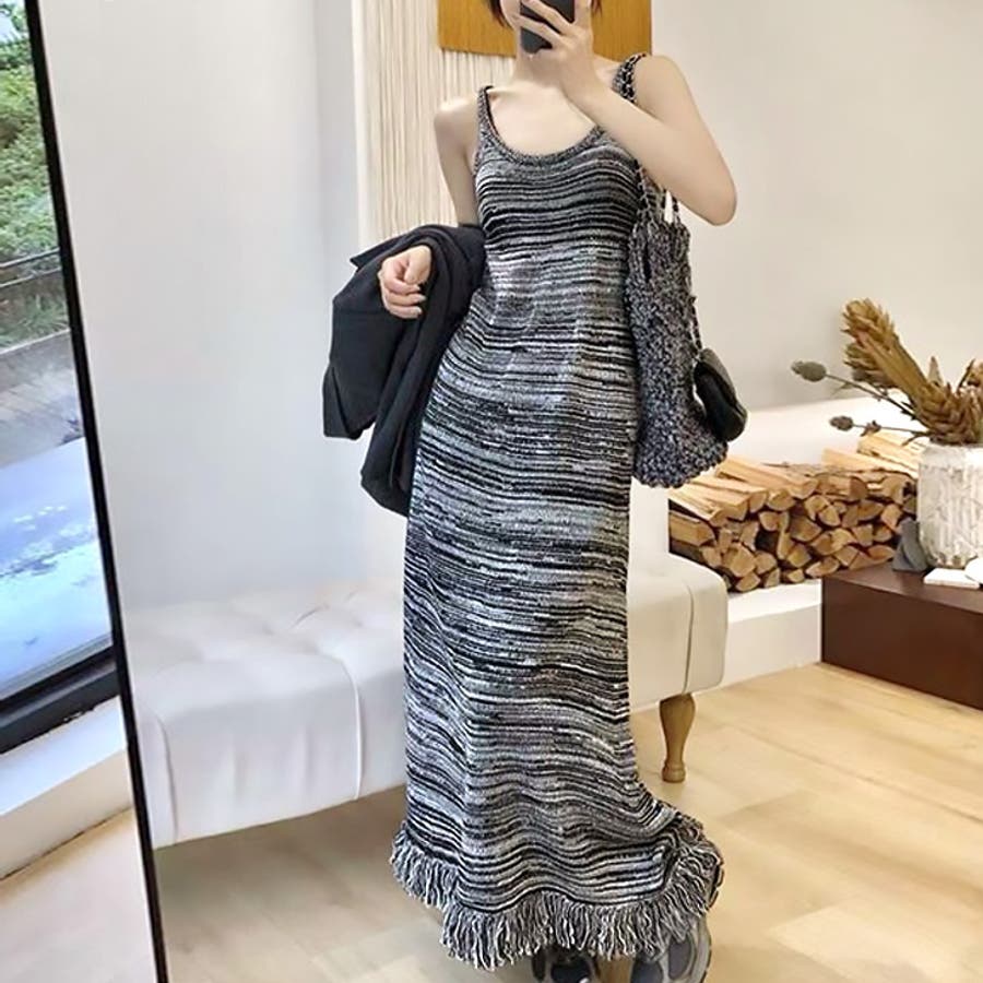 【17601】マルチカラーニットキャミロングワンピース