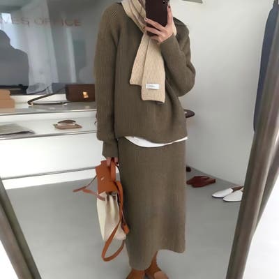| 商品番号: 17604 商品名: ニットトップス&スカート 商品説明: ニットトップスとロングスカートのセットアップ。時短でコーディネートがサマになるだけでなく、それぞれ単品使いもしやすくスタイルの幅が広がるアイテムです。きれいめシーンから、カジュアルスタイルまで幅広く活躍します。 |