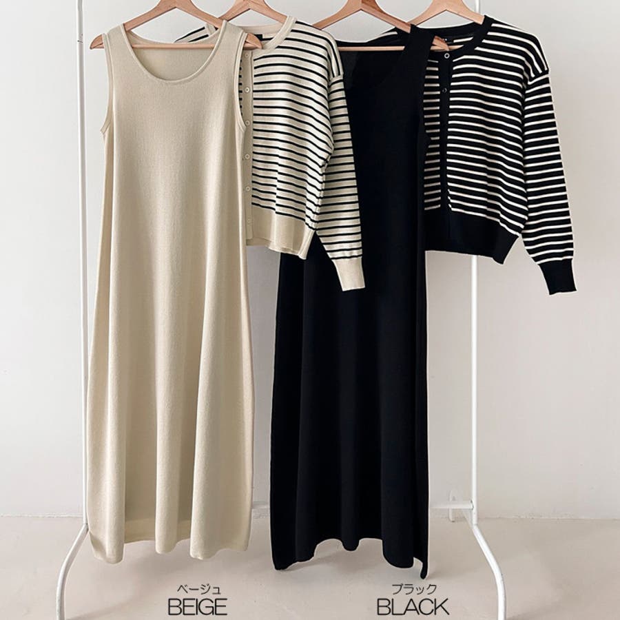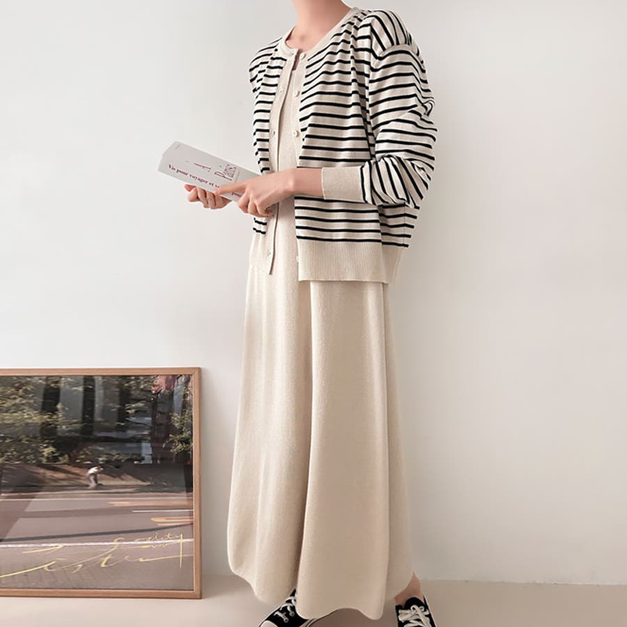 | 商品番号: 17607 商品名: ボーダーカーデ&ワンピース 商品説明: ボーダーカーデとノースリワンピースのニットセット。時短でコーディネートがサマになるだけでなく、それぞれ単品使いもしやすくスタイルの幅が広がるアイテムです。きれいめシーンから、カジュアルスタイルまで幅広く活躍します。 |