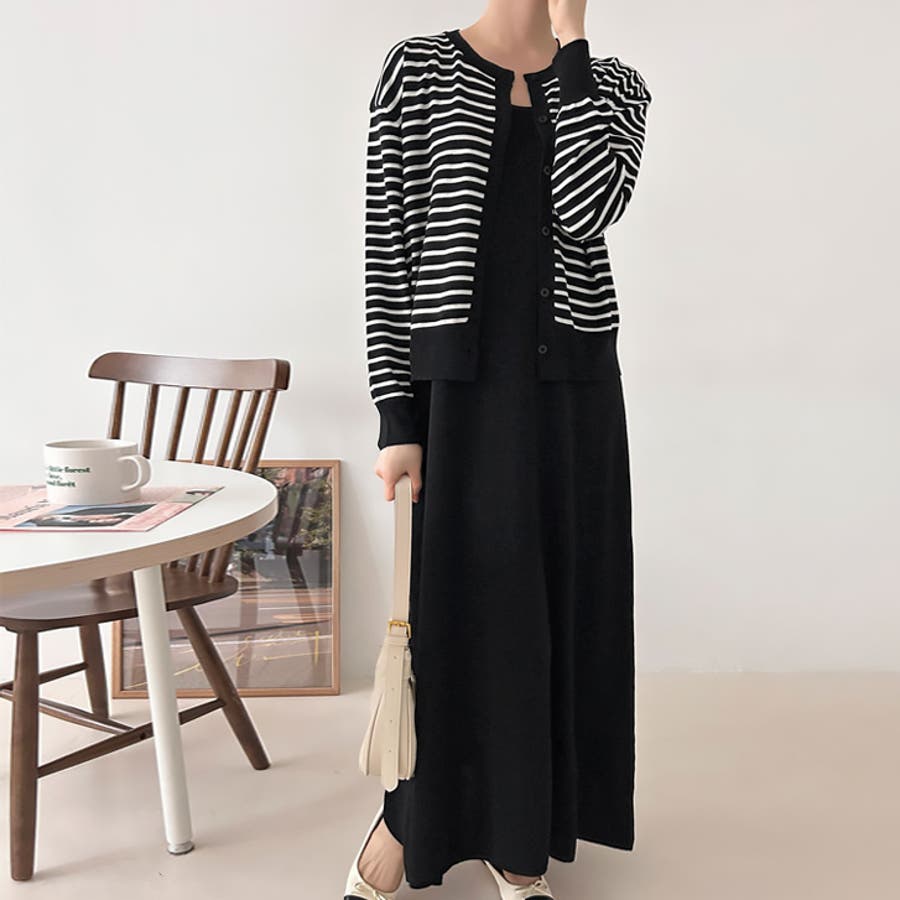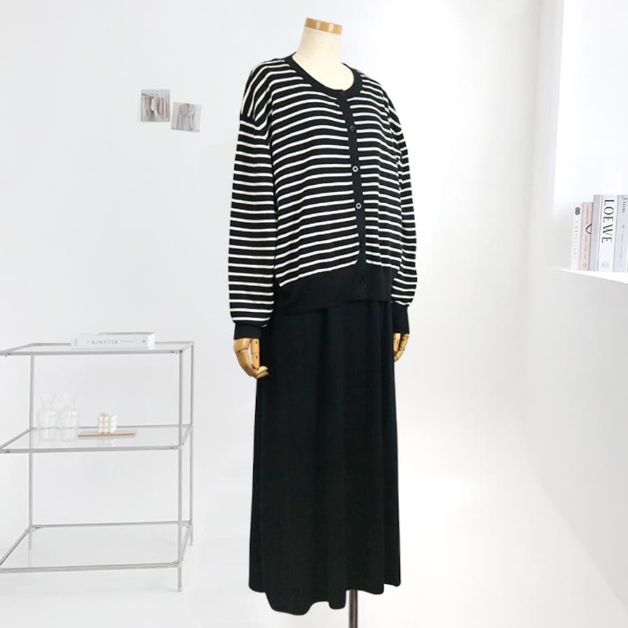 【17607】ボーダーカーデ&ワンピース