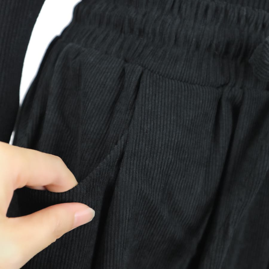 | モデルの身長は163センチです。温かみのあるコーデュロイで一気に季節感が加速します。 |