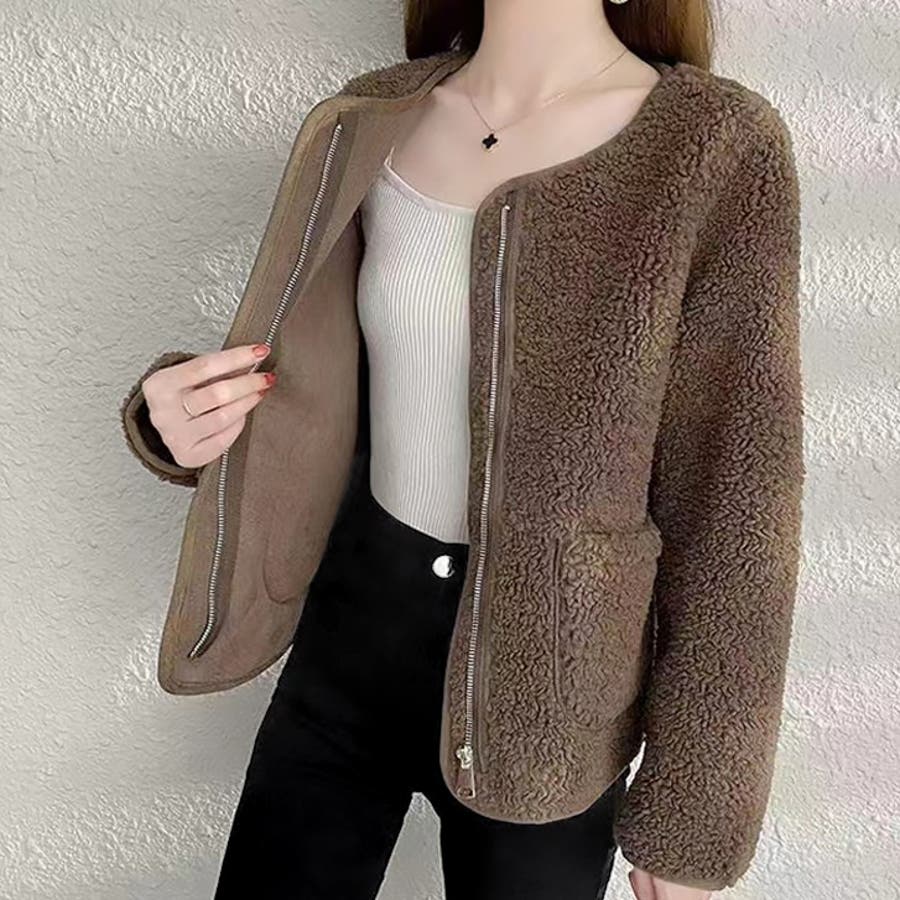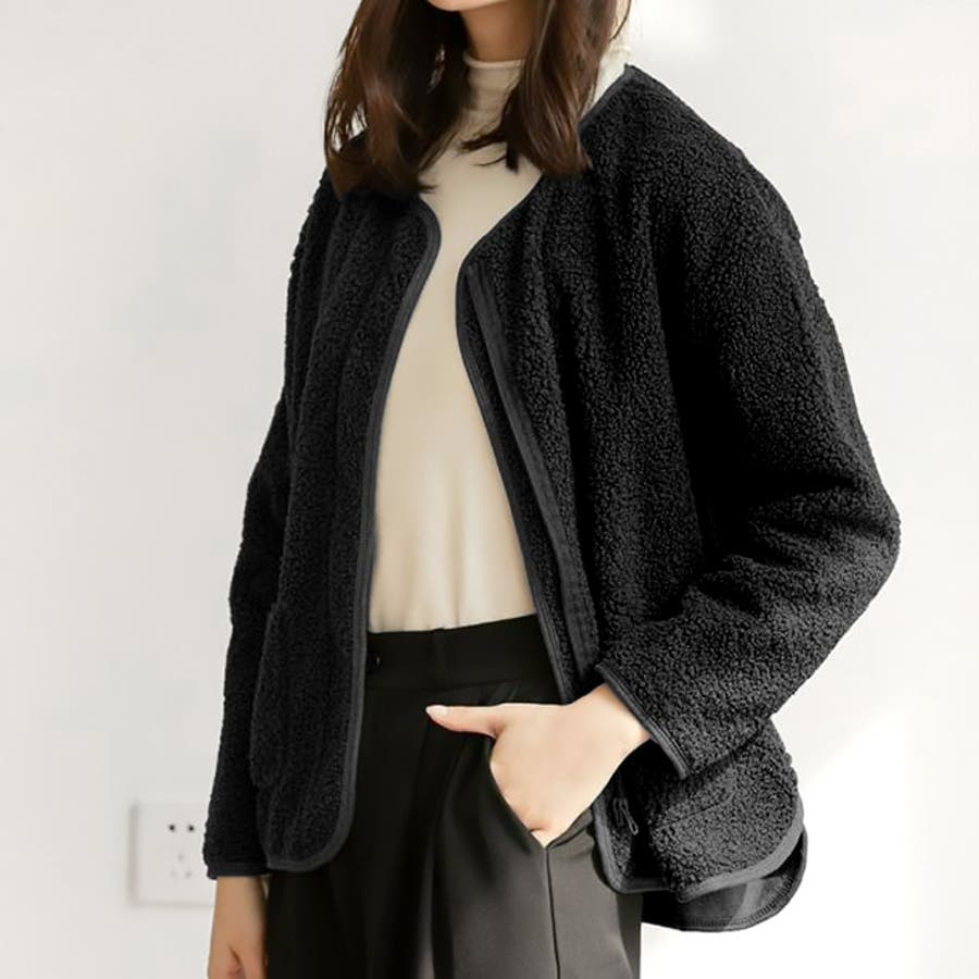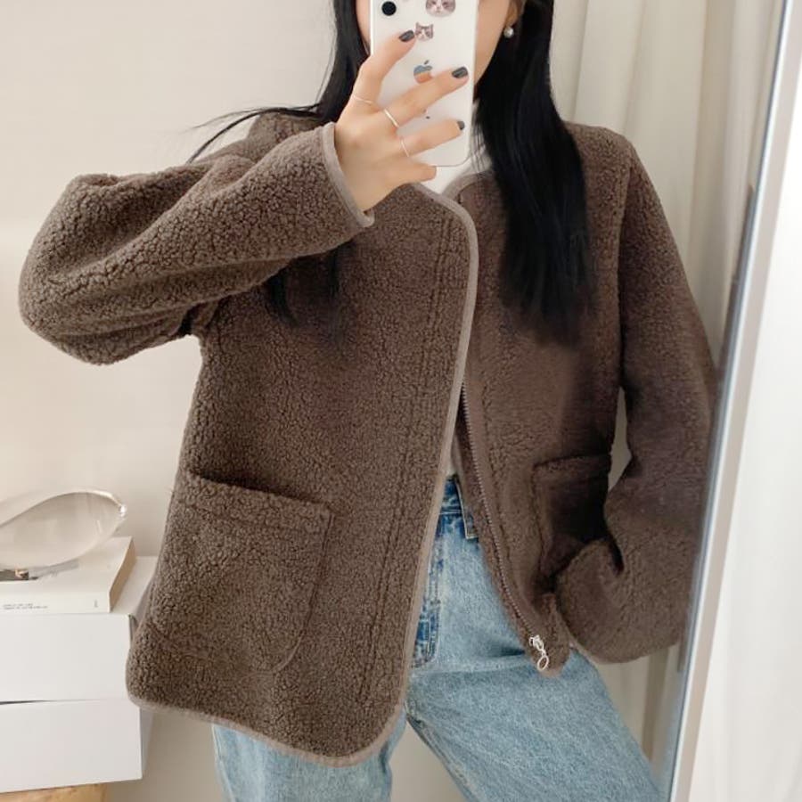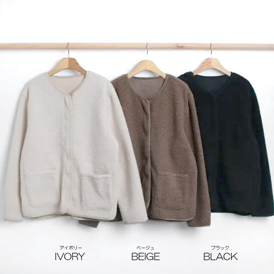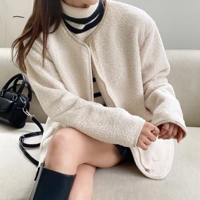 | 商品番号: 17611 商品名: ボアブルゾン 商品説明: 軽やかな着心地ながら暖かさをしっかりキープするボアジャケット。ノーカラーで首元をすっきり見せ、カジュアルながら洗練された印象に。軽く、快適に着用ができるのも嬉しいポイント◎きれいめにもカジュアルにも着こなせる万能アウターです。 |