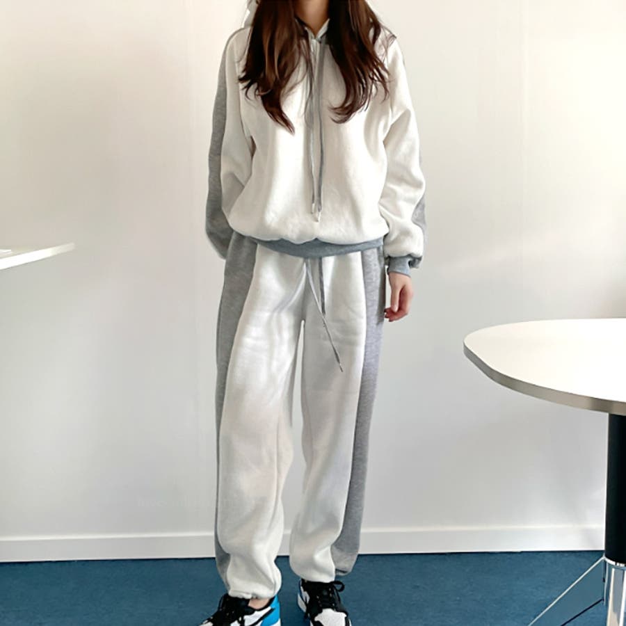 | 商品番号: 17612 商品名: バイカラースウェットセット 商品説明: バイカラーのフーディーと、パンツのセットアイテム。あたたかく、伸縮性もあり、柔らかいので着心地もバツグン!シングル使いもできるスポーツテイストとの上下セットです。裏側は手触りの良いふわふわ起毛で、真冬でも暖かく着ていただけます。 |