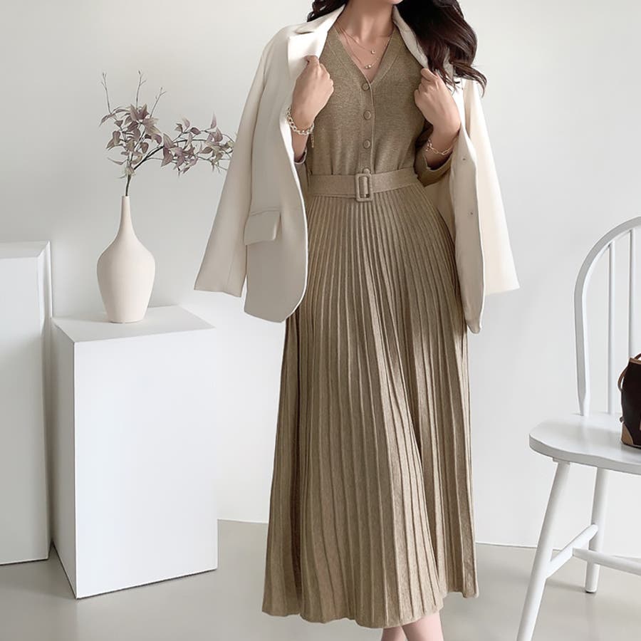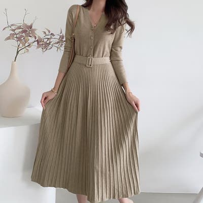 | 商品番号: 17618 商品名: プリーツニットワンピース 商品説明: ニットプリーツで上品な印象を呼び込む、エレガントなシルエットのワンピース。雰囲気のあるデザインで、大人シックに引き立つルックス。ハイウエストの位置で切り替えを入れてあるので、脚長効果も抜群です♡ベルトでメリハリのあるスタイルをメイクします。きれいめデザインで様々なシーンにマッチします。 |