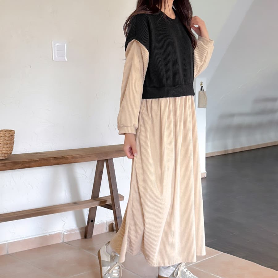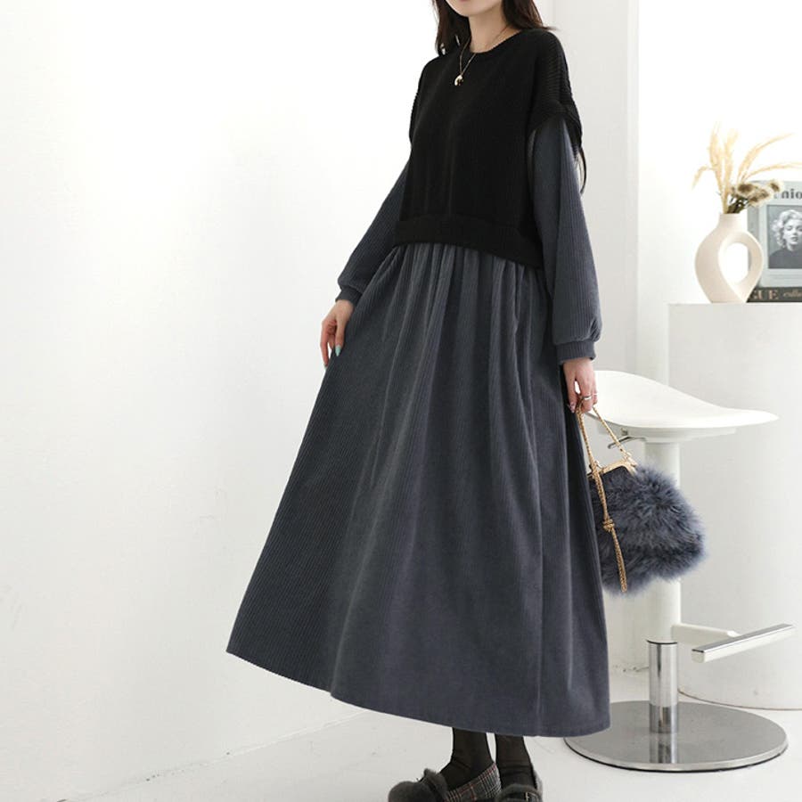 | 商品番号: 17623 商品名: バイカラードッキングワンピース 商品説明: ベストと重ね着をしているように見える、フェイクロングワンピース。ルーズシルエットで、気になる体型もしっかりカバーしてくれる嬉しいシルエット♡暖かみを感じるコーデュロイ仕様で、レトロで表情豊かな太い縞が目を引くワンピースです。 |