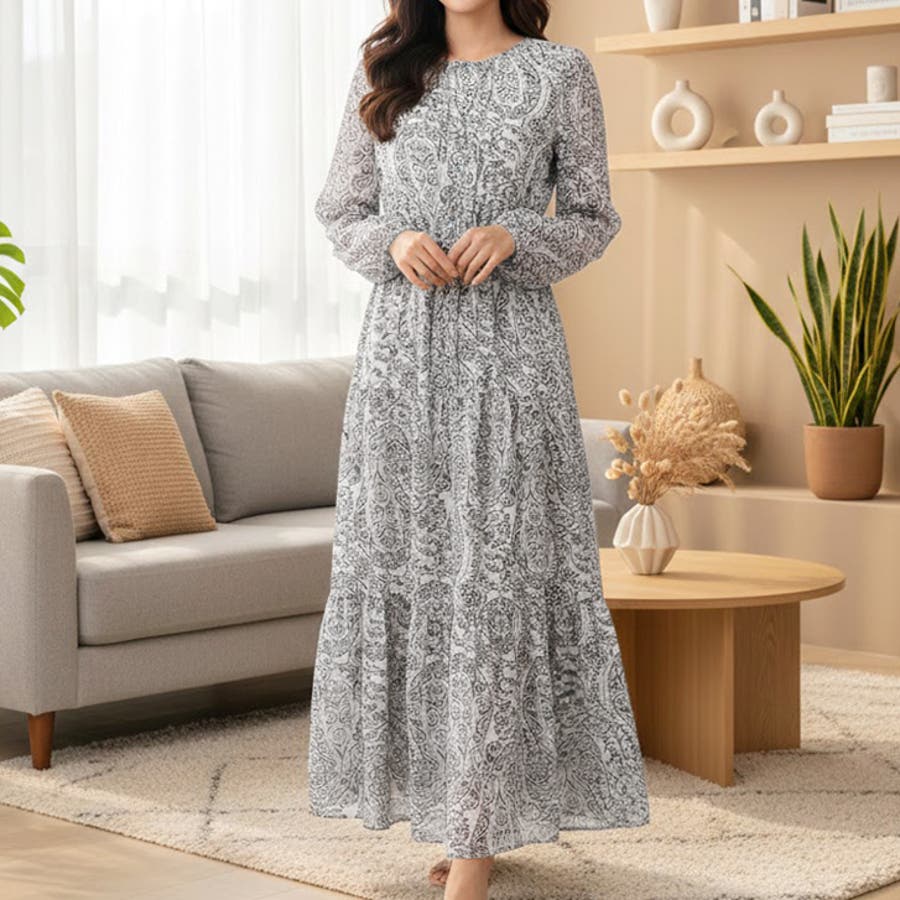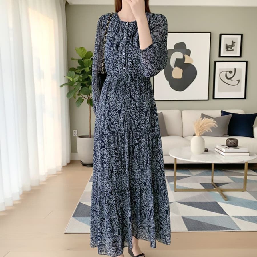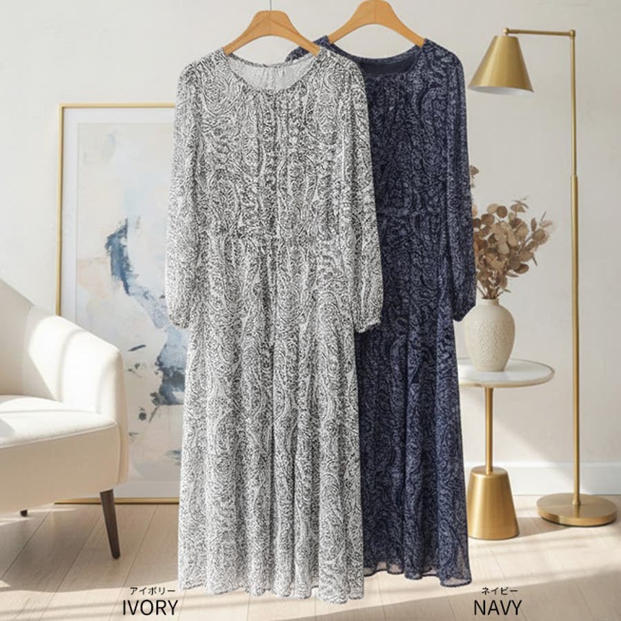 | 商品番号: 17636 商品名: モダンペイズリーロングワンピース 商品説明: モードな雰囲気のペイズリー柄がかわいいロングワンピース。ふんわり揺らめくシルエットで装いに軽やかなニュアンスを与えてくれる1枚。首元はシンプルな丸首で、派手すぎずデイリーからお出かけまで幅広く使える一着です。シャーリングでウエストを絞ることで、リラックスして着用しながら体型カバーも期待できます。 |