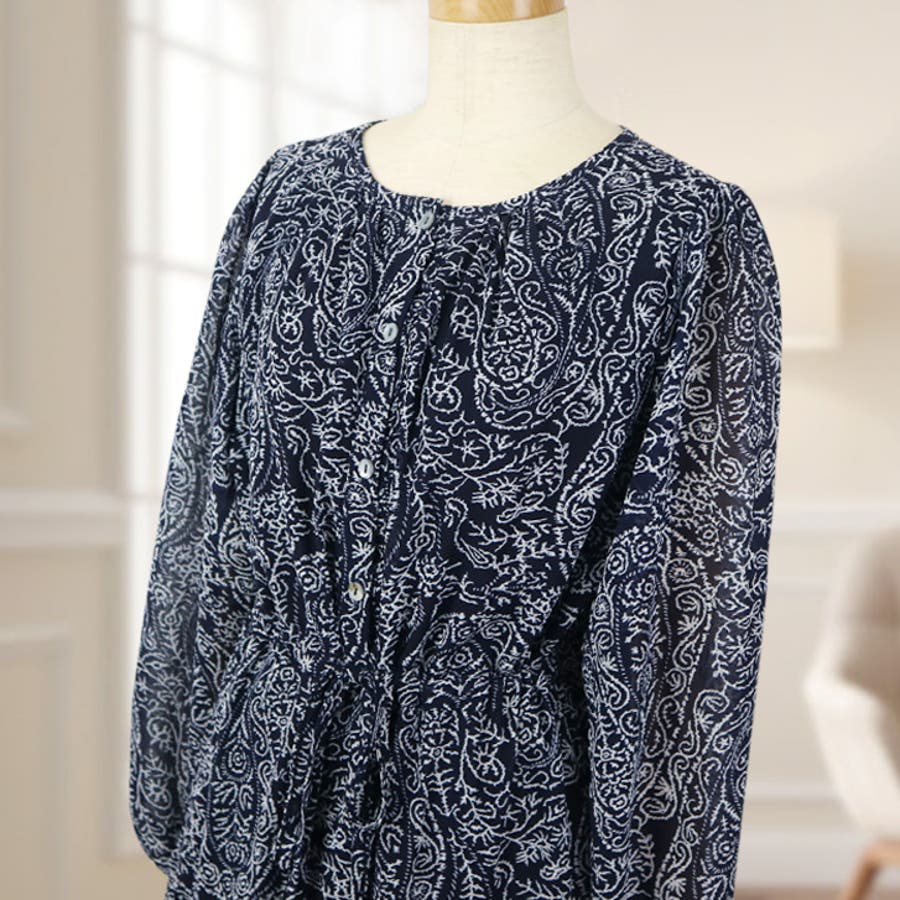 | 素材等 | 本体: ポリエステル100% 生地の伸縮性 : なし 生地の厚み : 薄手 生地の透け感 : あり 裏地 : あり その他 : プルオーバー、ウエストギャザー、上半身ボタンあり |