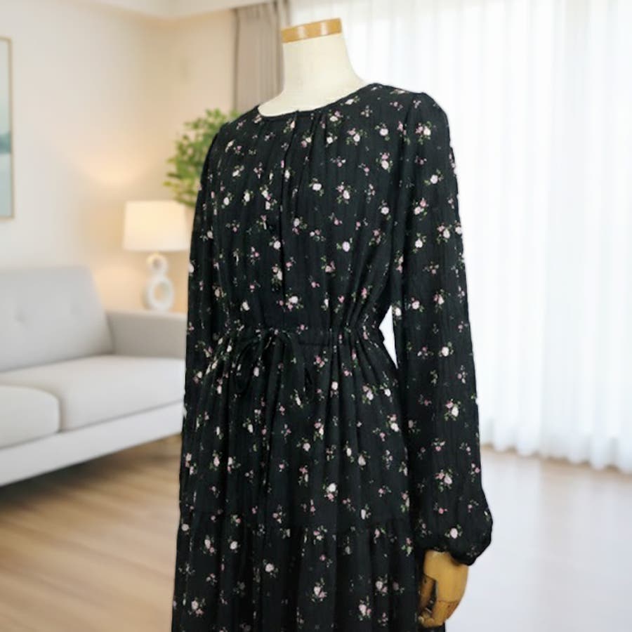 | 商品番号: 17637 商品名: レトロフラワーワンピース 商品説明: 上品さと華やかさを兼ね備えた、ティアードロングワンピース。ウエストが紐で調節できるドローストリング仕様で、キュッと絞ればスタイルアップ、緩めればリラックスしたAラインを楽しめます。表面にポコポコとしたシボ感がある生地なので、シワが目立ちにくく、アイロンの手間が省けるのも嬉しいポイントです。 |