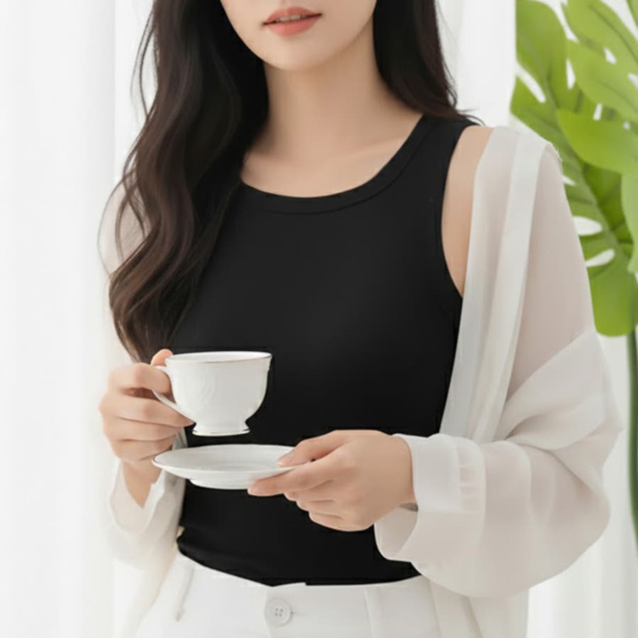 | 商品番号: 17641 商品名: カップつきタンクトップ 商品説明: 肌に心地よくフィットするカップ付きのタンクトップ。ジャケットやカーディガンとのレイヤードなど、季節やシーンに合わせて幅広いスタイリングが楽しめるアイテムです。伸縮性もありボディラインに沿うスリムな形で、スタイルアップを後押しします。 |