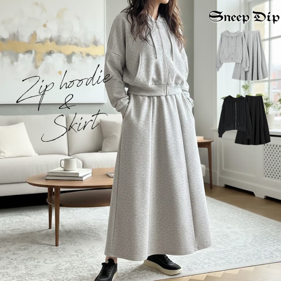 【17643】ジップパーカー&スカートSET